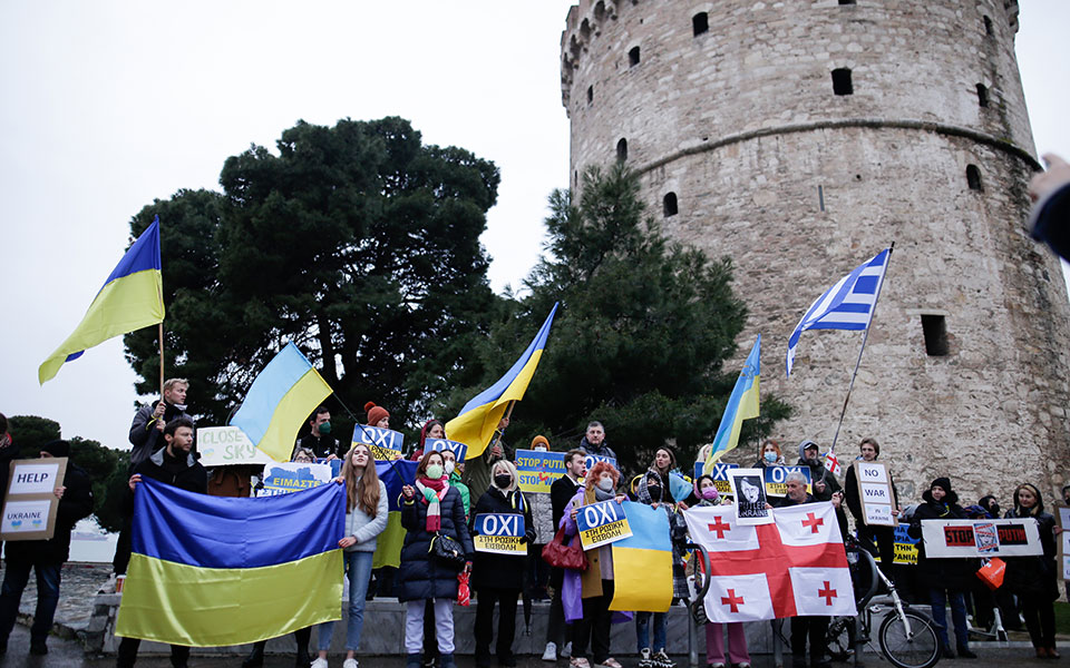 - 21:56Ουκρανοί και Ελληνες κύκλωσαν τον Λευκό Πύργο στέλνοντας το δικό τους αντιπολεμικό μήνυμα