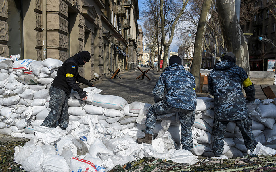 Σε οχυρό έχει μετατραπεί το κέντρο της Οδησσού. Ουκρανοί στρατιώτες έχουν αναλάβει τη φύλαξη της πόλης, ενώ βρίσκονται σε επιφυλακή για τυχόν αεροπορικές ή θαλάσσιες επιδρομές των ρωσικών δυνάμεων εισβολής.