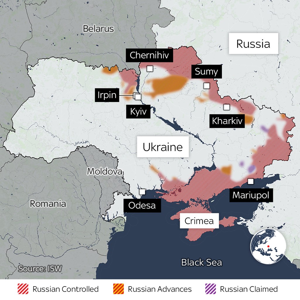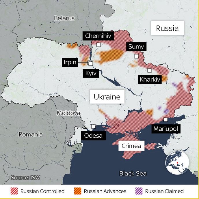Σύμφωνα με τις εκτιμήσεις της Βρετανίας, οι ρωσικές δυνάμεις δεν είχαν σημαντικά οφέλη στις μάχες βορειοδυτικά του Κιέβου.