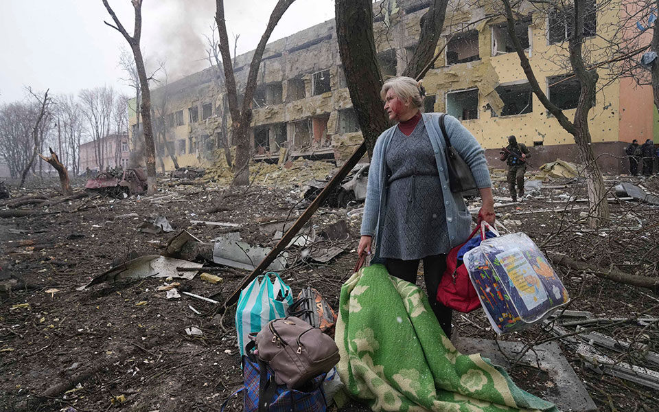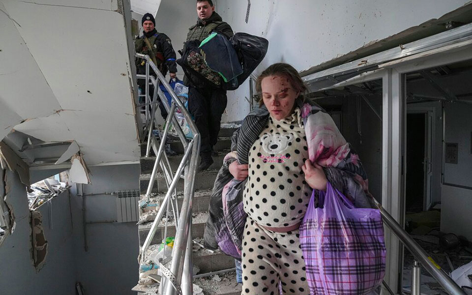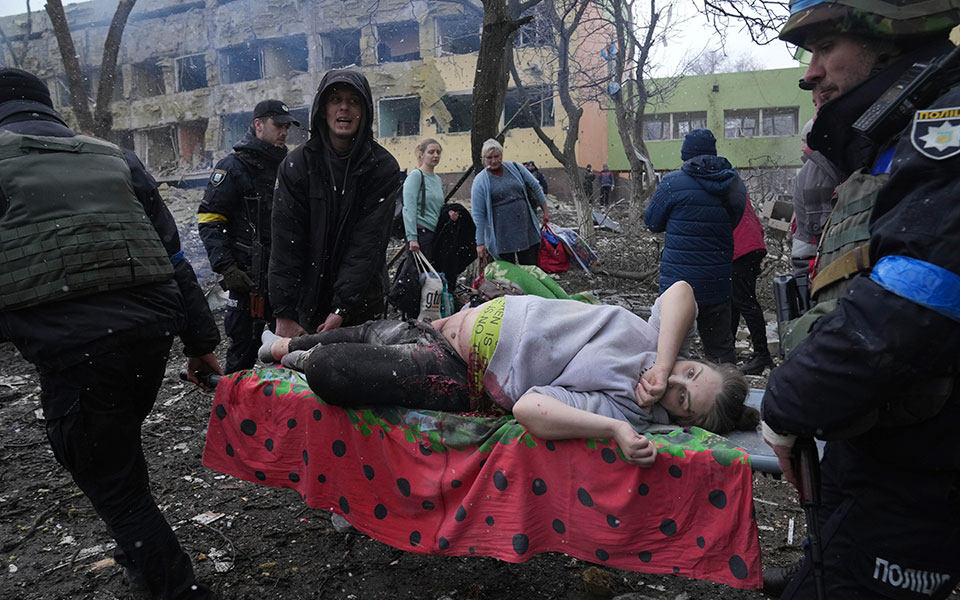 - 20:11Ουκρανοί υπάλληλοι έκτακτης ανάγκης μεταφέρουν μια τραυματισμένη έγκυο από το κατεστραμμένο μαιευτήριο στη Μαριούπολη