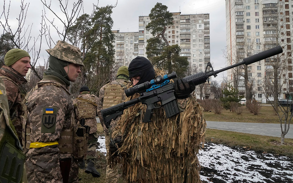 - 22:39Mέλη των Ουκρανικών Δυνάμεων Εδαφικής Άμυνας ετοιμάζονται να αποκρούσουν την επίθεση του ρωσικού στρατού στα περίχωρα του Κιέβου