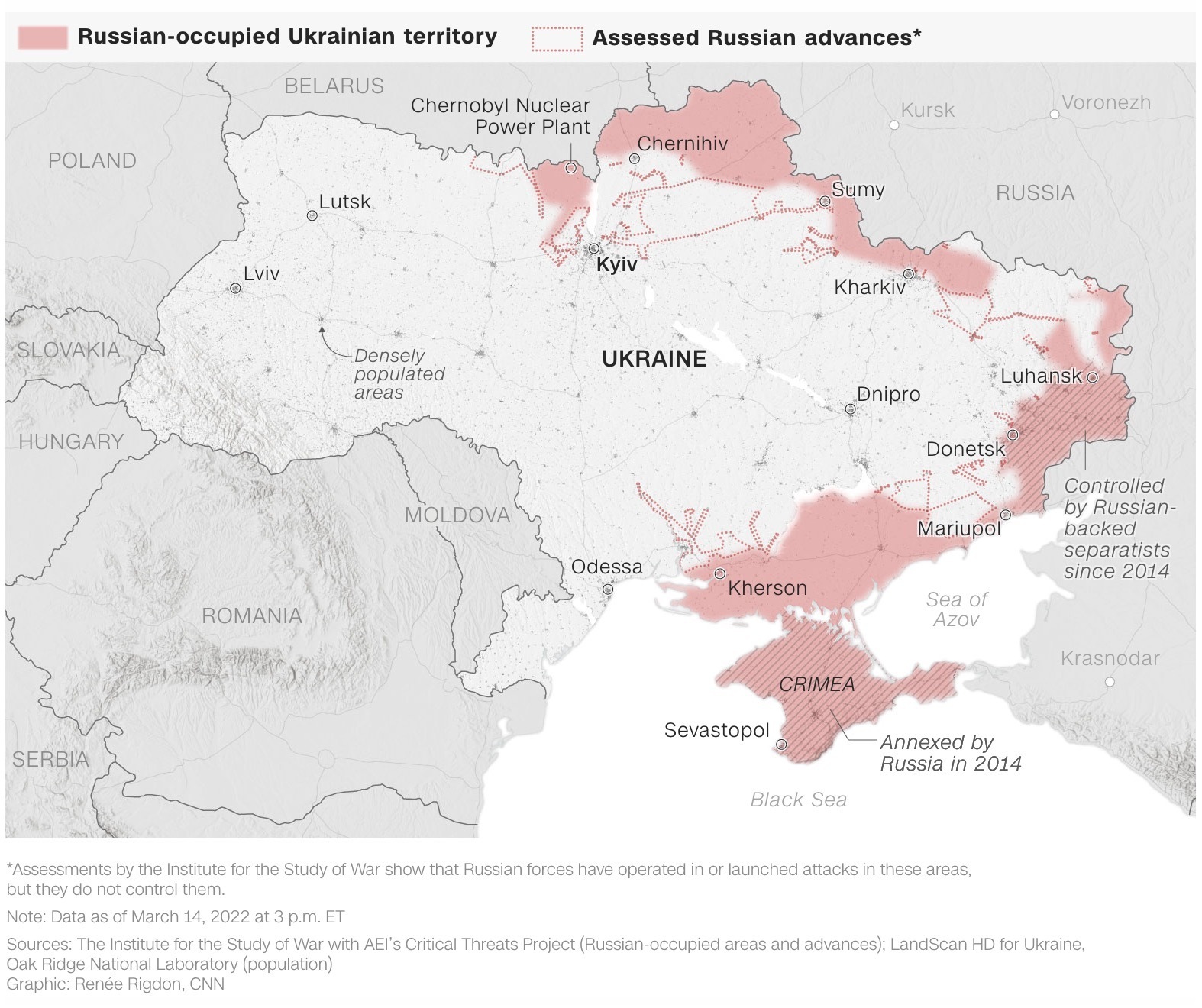 - 13:22Χάρτης με τα εδάφη που ελέγχουν οι ρωσικές δυνάμεις στην Ουκρανία