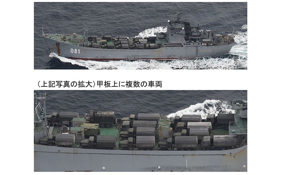 Τέσσερα ρωσικά πολεμικά πλοία πέρασαν από τα στενά Τσουγκάρου στη βορειοανατολική Ιαπωνία μεταξύ Τρίτης και Τετάρτης, μεταφέροντας πιθανώς στρατεύματα και οχήματα μάχης στην Ουκρανία, ανακοίνωσε το υπουργείο Άμυνας της Ιαπωνίας.