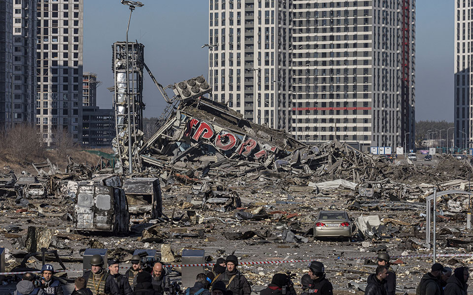 Ο βομβαρδισμός σε εμπορικό κέντρο του Κιέβου στοίχισε τη ζωή σε τουλάχιστον έξι ανθρώπους τη νύχτα, διαπίστωσε δημοσιογράφος του Γαλλικού Πρακτορείου, καθώς οι ρωσικές δυνάμεις συνεχίζουν τις κινήσεις τους για να περικυκλώσουν την πρωτεύουσα της Ουκρανίας.