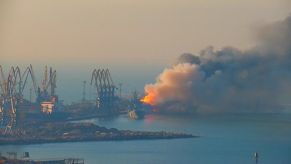 Οι ουκρανικές ένοπλες δυνάμεις ανακοίνωσαν το πρωί της Πέμπτης την καταστροφή ρωσικού πλοίου στο λιμάνι του Μπερντιάνσκ.