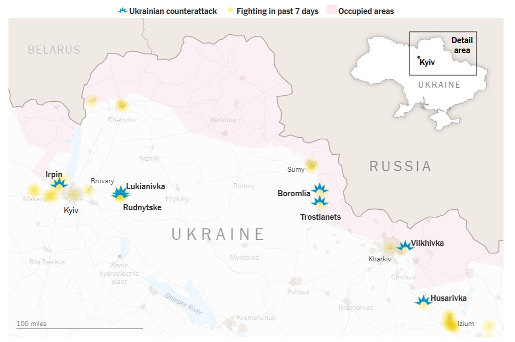 Σημειώνει ότι είναι «σχεδόν βέβαιο ότι η Ρωσία έχει αποτύχει στον στόχο της να περικυκλώσει το Κίεβο» λόγω επαναλαμβανόμενων αποτυχιών και επιτυχημένων αντεπιθέσεων από τις ουκρανικές δυνάμεις.