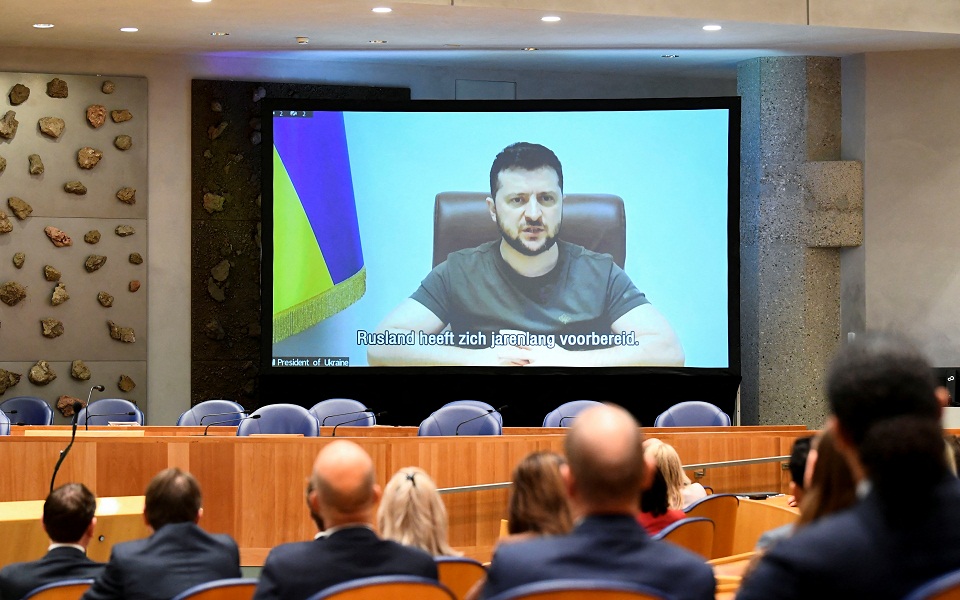 Πρέπει να σταματήσει η τυραννία στην Ανατολική Ευρώπη, και να νικήσει η ελευθερία, είπε ο Ουκρανός πρόεδρος Βολοντίμιρ Ζελένσκι απευθυνόμενος στο ολλανδικό κοινοβούλιο, ζητώντας παράλληλα περισσότερο πολεμικό εξοπλισμό.