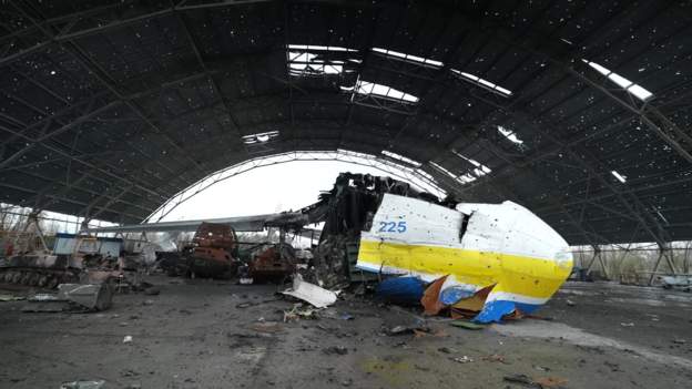• Τα ρωσικά στρατεύματα εγκατέλειψαν το αεροδρόμιο του Χοστόμελ κοντά στην πρωτεύουσα, αφήνοντας πίσω τους τα ερείπια ενός από τα μεγαλύτερα αεροσκάφη στον κόσμο.