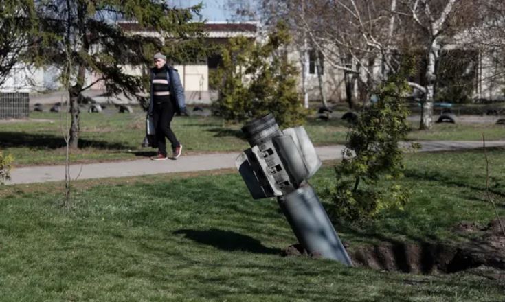 - 18:31Μια γυναίκα περνά μπροστά από έναν πύραυλο που δεν έχει εκραγεί στο βόρειο τμήμα του Χαρκόβου