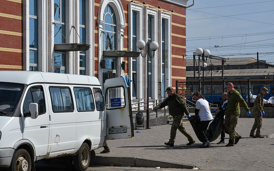 Τουλάχιστον 50 άνθρωποι σκοτώθηκαν -ανάμεσά τους 5 παιδιά- και δεκάδες ακόμη τραυματίστηκαν σε χτύπημα με ρωσικό πύραυλο σε σιδηροδρομικό σταθμό στο Κραματόρσκ που ήταν γεμάτος με ανθρώπους που εγκατέλειπαν την περιοχή στην ανατολική Ουκρανία, σύμφωνα με νεότερο απολογισμό των ουκρανικών αρχών.