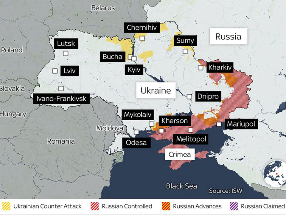 Η κατάσταση στην Ουκρανία όπως την αποτυπώνει στον χάρτη το Sky News