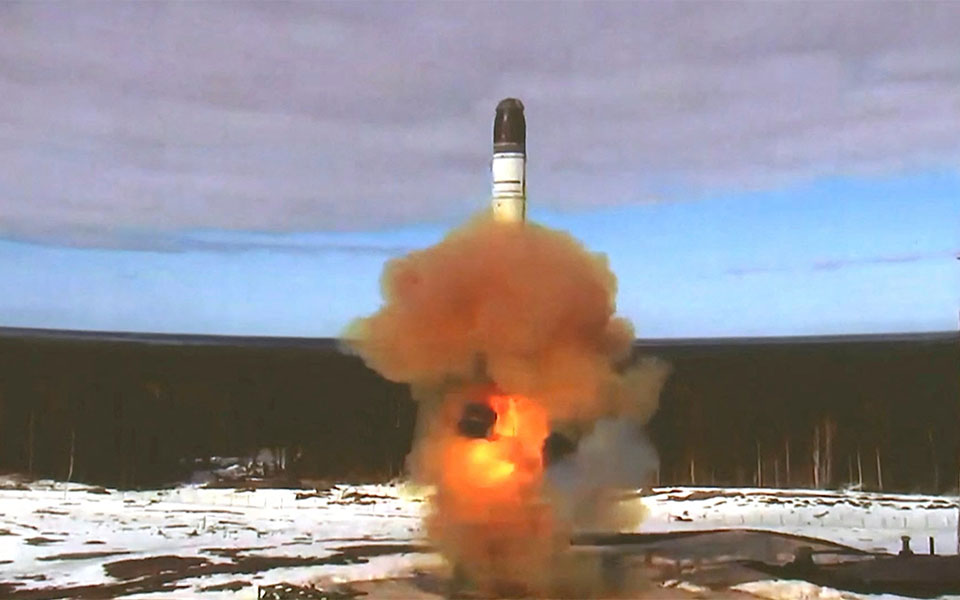 Η Ρωσία ανακοίνωσε την Τετάρτη ότι πραγματοποίησε δοκιμή του νέου διηπειρωτικού βαλλιστικού πυραύλου Sarmat, ενός στρατηγικού όπλου που, όπως είπε ο πρόεδρος Βλαντιμίρ Πούτιν, δεν υπάρχει πουθενά αλλού ανάλογος του, ο οποίος θα κάνει όσους προσπαθούν να απειλήσουν τη Ρωσία να το ξανασκεφτούν.