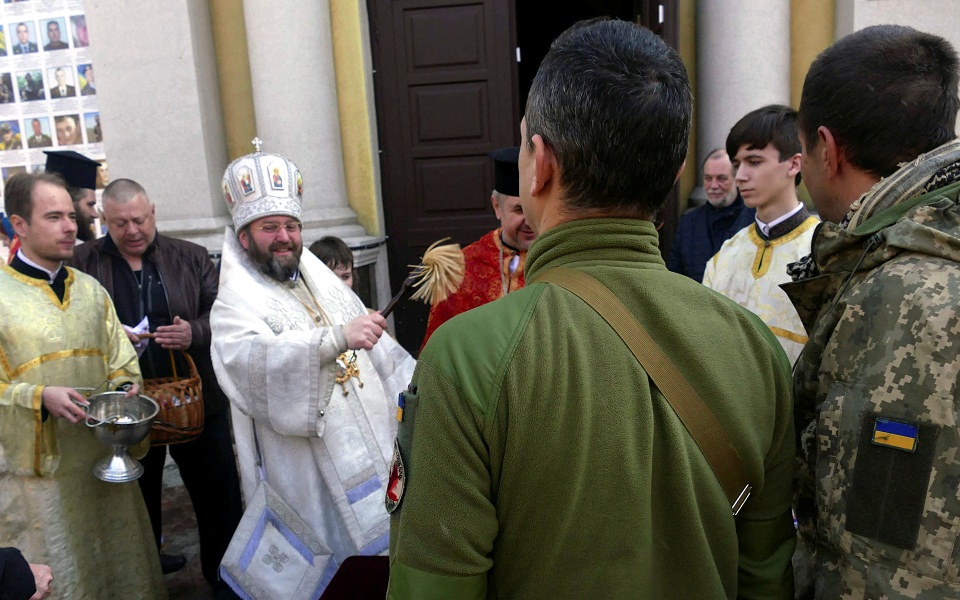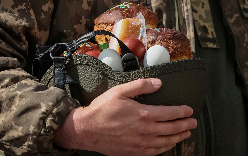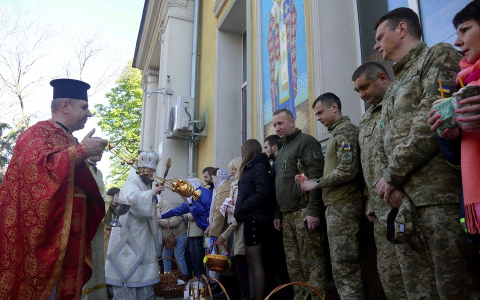 Ο πόλεμος στην Ουκρανία δεν σταμάτησε ούτε για το Πάσχα, αλλά στρατιώτες σε Κίεβο και Οδησσό έσπευσαν στις εκκλησίες για να τους ευλογήσουν οι ιερείς στην ορθόδοξη χώρα που δέχεται επίθεση από άλλη ορθόδοξη χώρα.