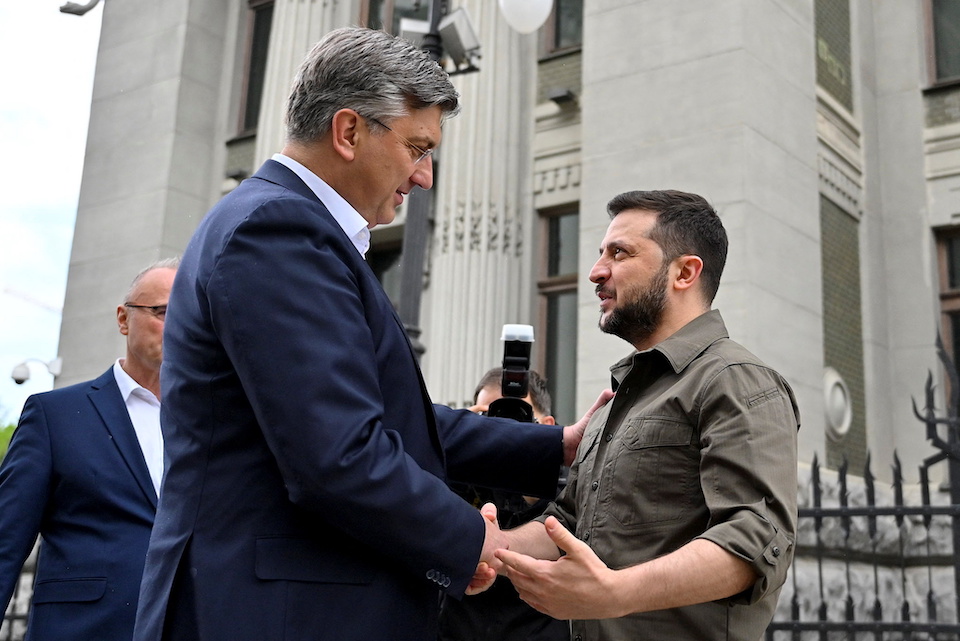 Ο Κροάτης πρωθυπουργός Αντρέι Πλένκοβιτς με τον Ουκρανό πρόεδρο Βολοντίμιρ Ζελένσκι σήμερα στο Κίεβο