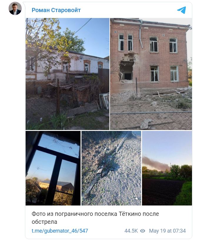 Επλήγη βιοτεχνία παραγωγής αλκοολούχων ποτών και αρκετά άλλα κτίρια στο χωριό Τιότκινο, ανέφερε ο κ. Σταραβόιτ μέσω της πλατφόρμας Telegram.