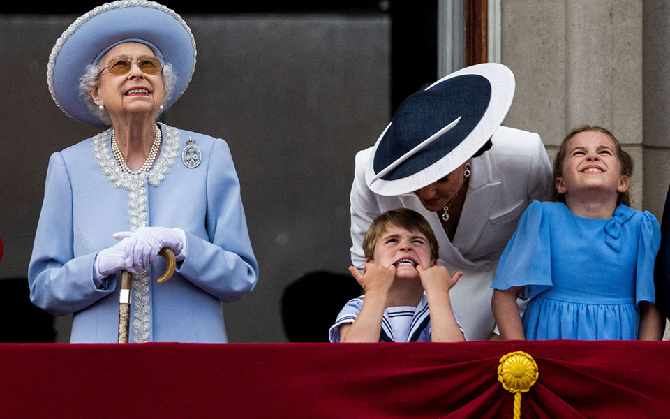 Στις 3 το μεσημέρι η βασίλισσα Ελισάβετ, η Δούκισσα της Κορνουάλης Καμίλα, ο πρίγκιπας Κάρολος, η πριγκίπισσα Άννα, ο πρίγκιπας Ουίλιαμ, η Δούκισσα του Κέιμπριτζ και τα τρία της παιδιά, βγήκαν στο μπαλκόνι για να παρακολουθήσουν τα μαχητικά αεροσκάφη.