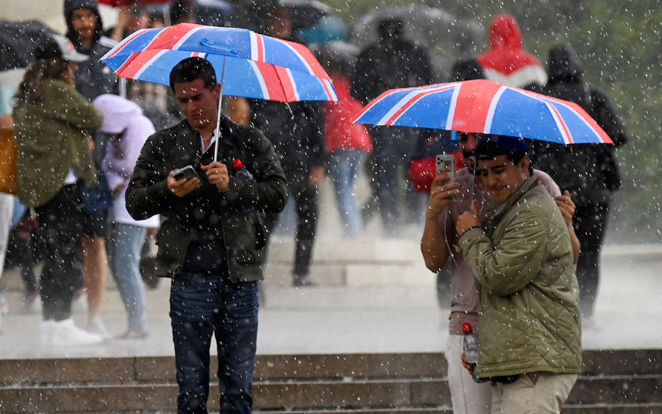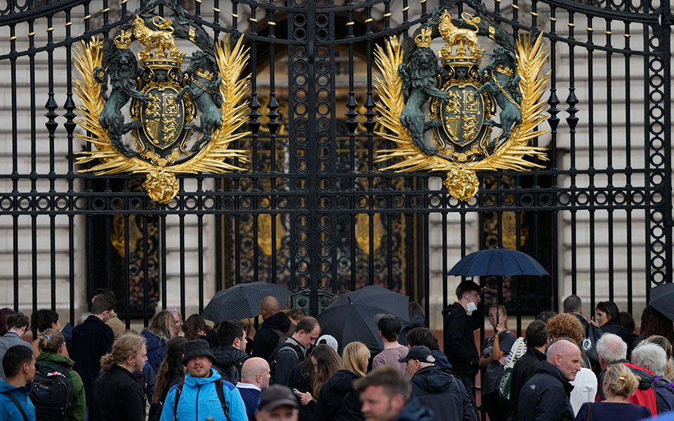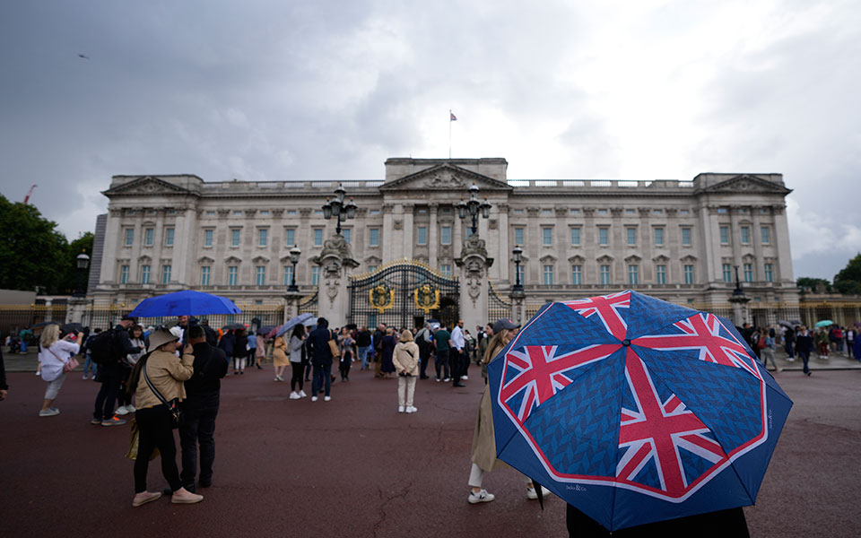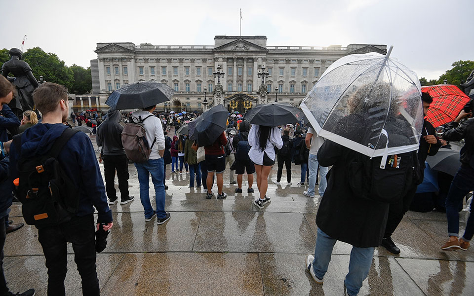 Ο κόσμος αψηφά τη βροχή έξω από τα Ανάκτορα του Μπάκιγχαμ