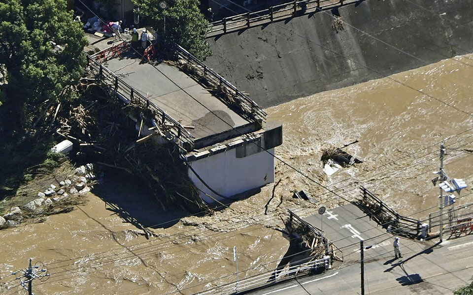 Ένας 40χρονος έχασε τη ζωή του στην Κακεγκάουα, στον νομό Σιζουόκα, στην κεντρική Ιαπωνία, όταν το σπίτι του παρασύρθηκε από κατολίσθηση, μετέδωσαν το δημόσιο τηλεοπτικό δίκτυο NHK και τοπικά μέσα ενημέρωσης.