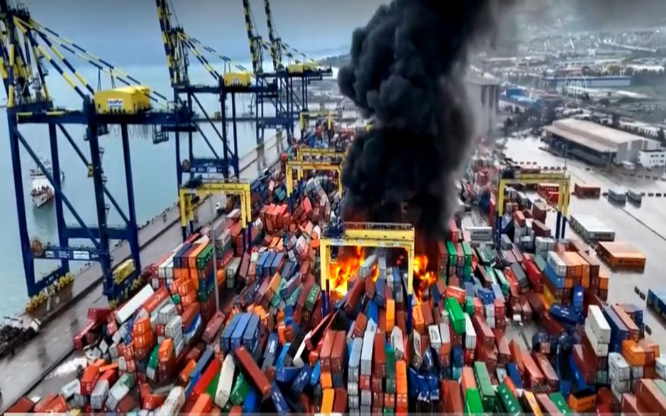 Η περιοχή αυτή επλήγη νωρίτερα από δύο ισχυρούς σεισμούς. Δεν είναι προς το παρόν σαφές τι καίγεται στο λιμάνι.