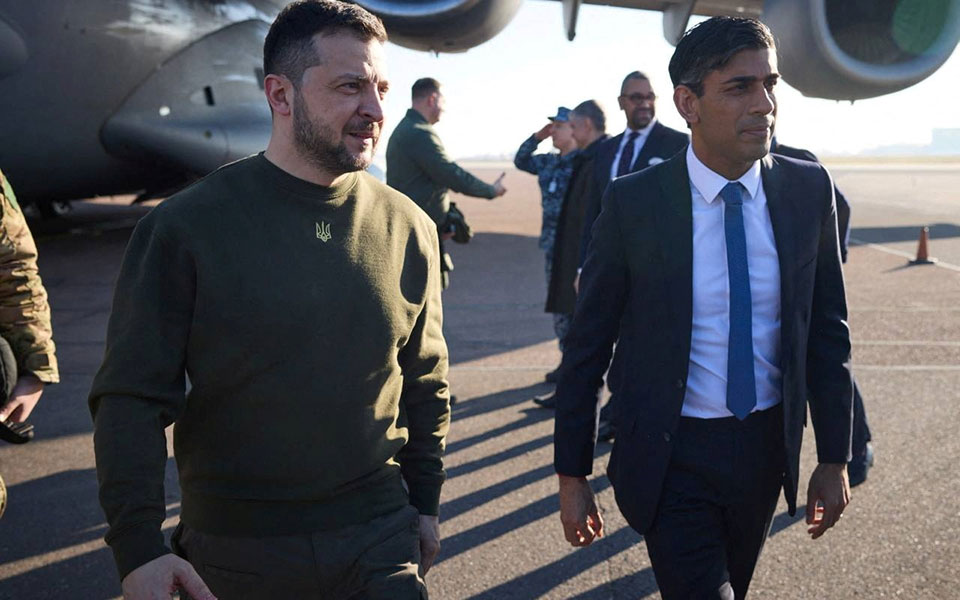 «Η επίσκεψη του προέδρου Ζελένσκι στο Ηνωμένο Βασίλειο αποτελεί απόδειξη για το κουράγιο, την αποφασιστικότητα και τον αγώνα της χώρας του και απόδειξη για την άθραυστη φιλία μεταξύ των δύο χωρών μας», ανέφερε ο Σούνακ σε ανακοίνωση.
