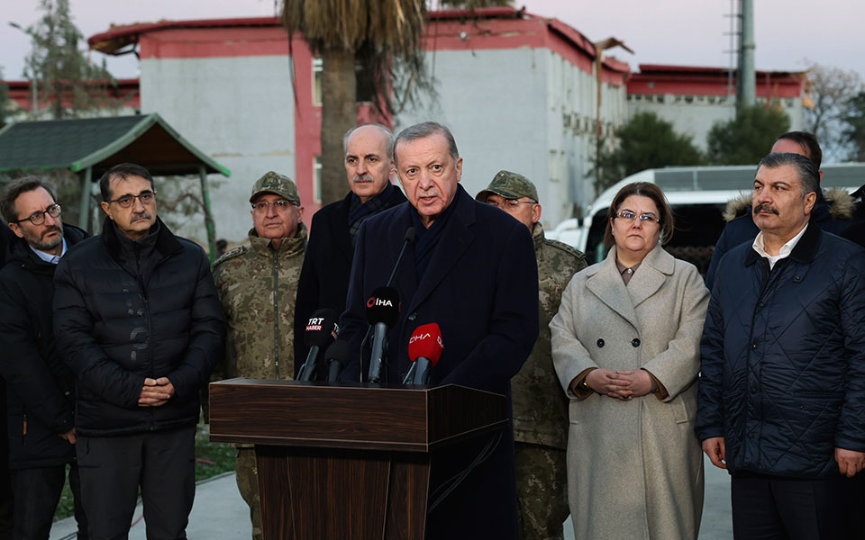 Ο αρχηγός του τουρκικού κράτους παραδέχθηκε προχθές, Τετάρτη, πως υπήρξαν «κενά» στην αντίδραση των αρχών. Αλλά επιδιώκει να πάρει ξανά το πάνω χέρι. Την Τρίτη, πήρε μέρος σε σύσκεψη των υπηρεσιών διαχείρισης καταστροφών στην Αγκυρα, προτού περιοδεύσει για δύο ημέρες σε σεισμόπληκτες περιοχές. Στην Αντιγιαμάν, πάντως, δεν πήγε.
