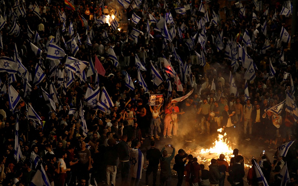 Ο Ισραηλινός πρόεδρος Ισαάκ Χέρτζογκ προέτρεψε τη Δευτέρα την κυβέρνηση να σταματήσει την επίμαχη δικαστική αναθεώρησή της, μια ημέρα αφότου ο πρωθυπουργός Μπενιαμίν Νετανιάχου απέλυσε τον υπουργό Αμυνας επειδή ήταν αντίθετος στην κίνηση, προκαλώντας μαζικές διαδηλώσεις στους δρόμους.