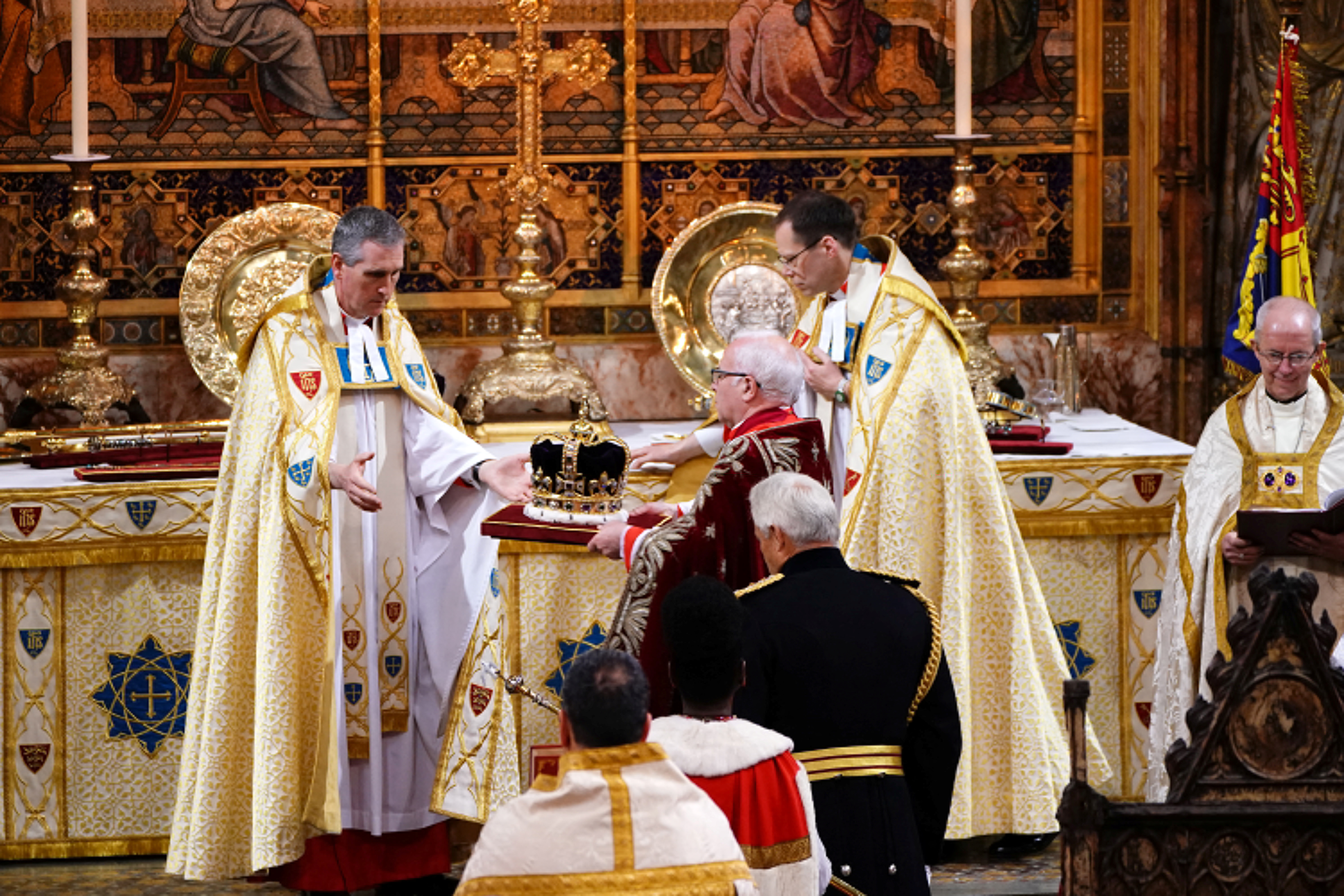 Το στέμμα ευλογείται από τον Αρχιεπίσκοπο του Καντέρμπουρι.