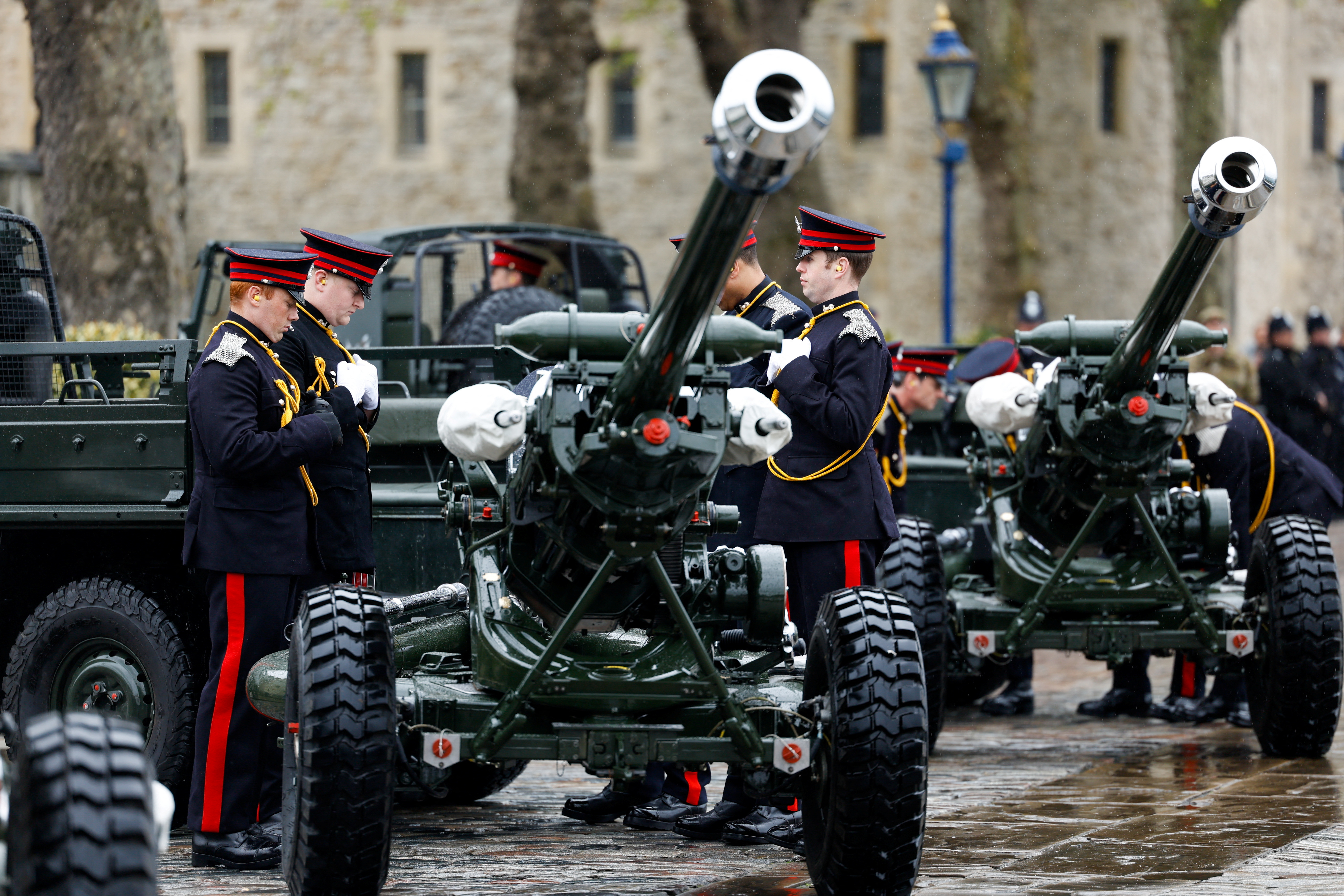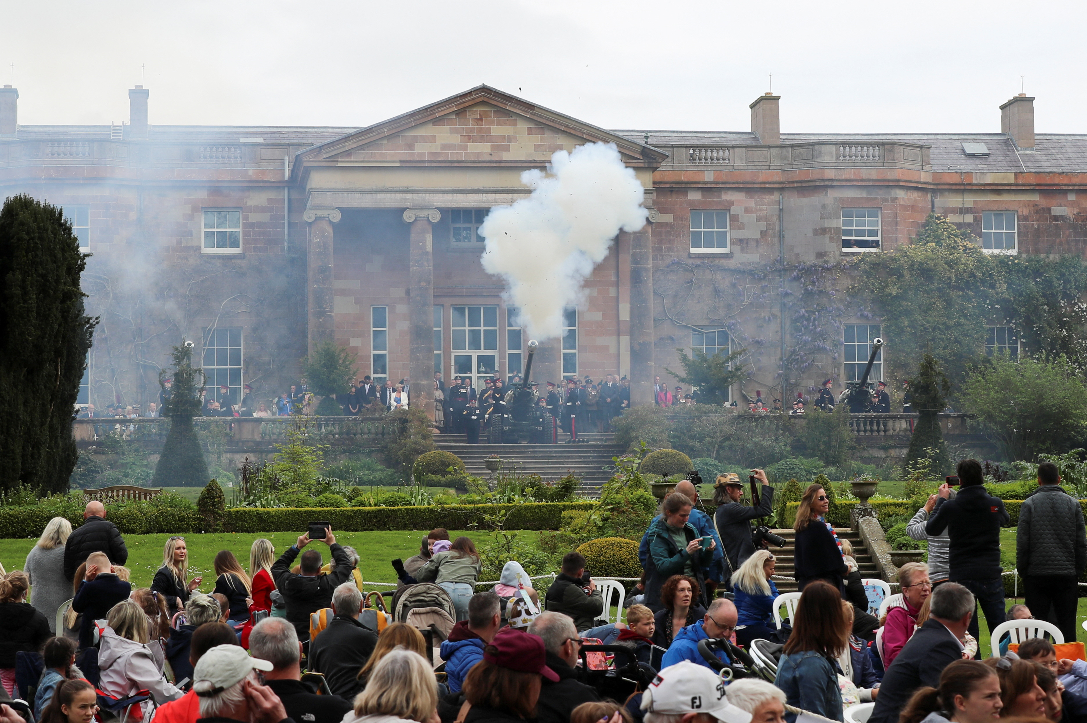 - 14:27Ενας πυροβολισμός από μέλη του Βασιλικού Πυροβολικού στο Royal Hillsborough Castle, στο Hillsborough της Βόρειας Ιρλανδίας.