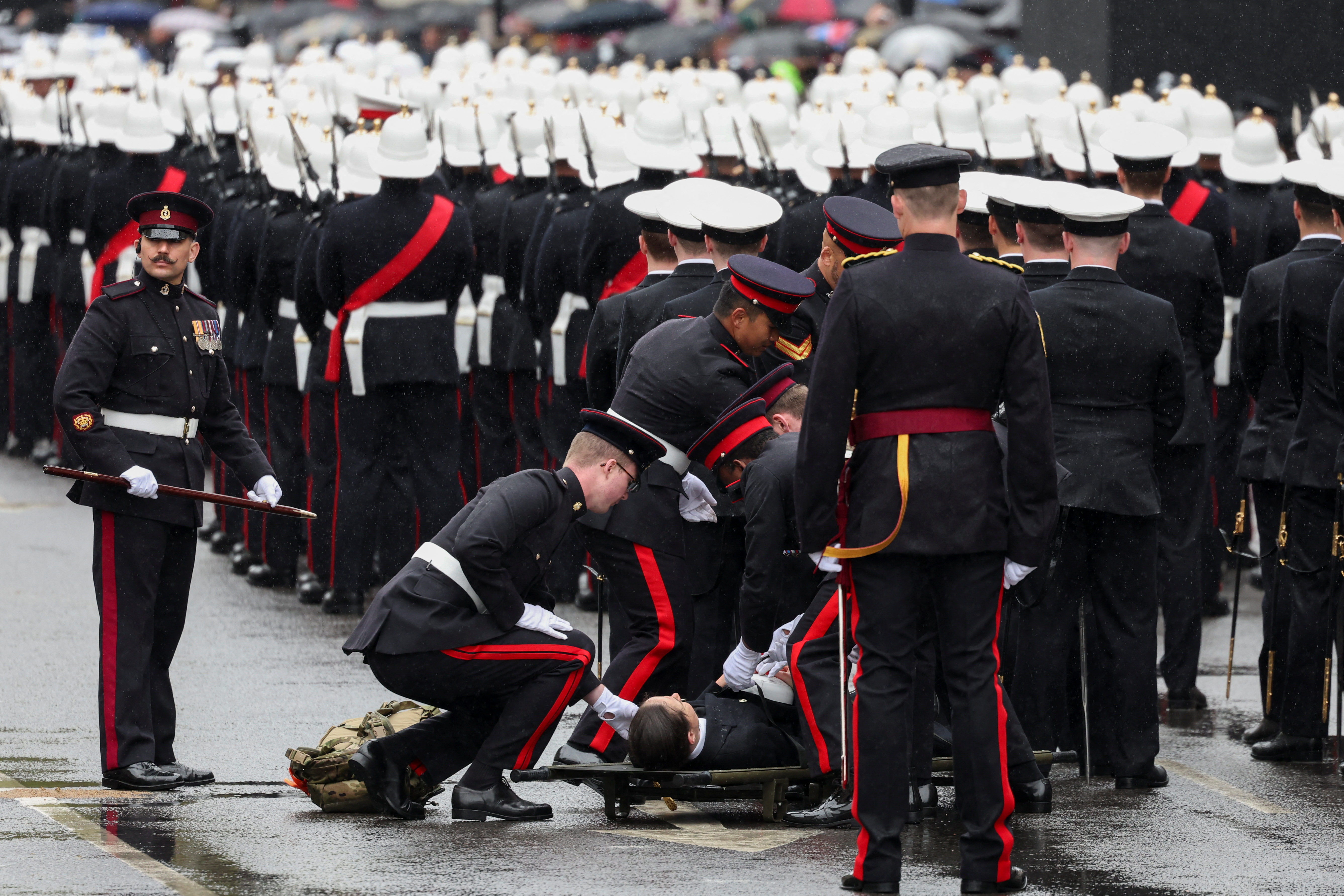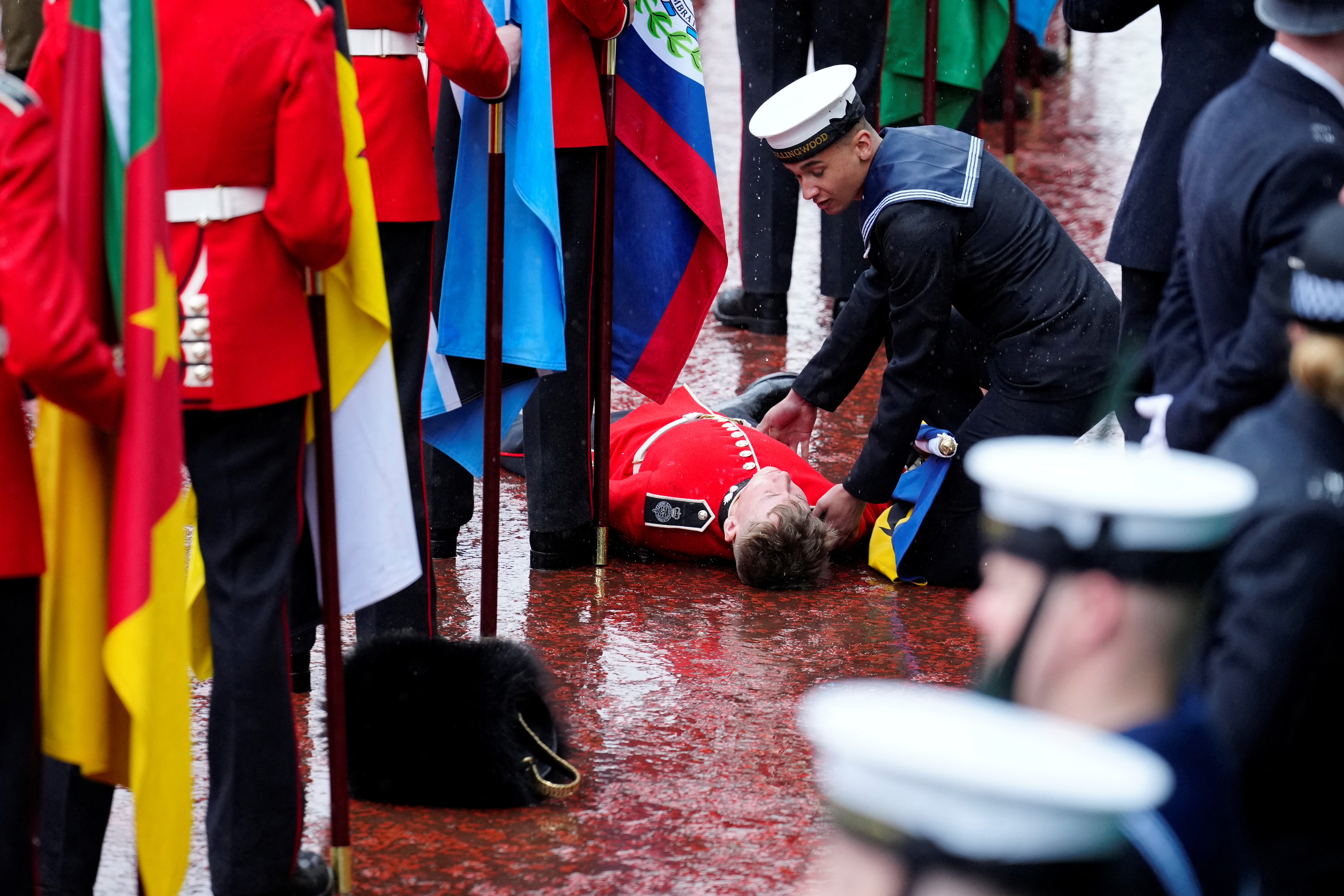 Σημαιοφόρος καταρρέει κατά τη διάρκεια της υποδοχής του βασιλικού ζεύγους.