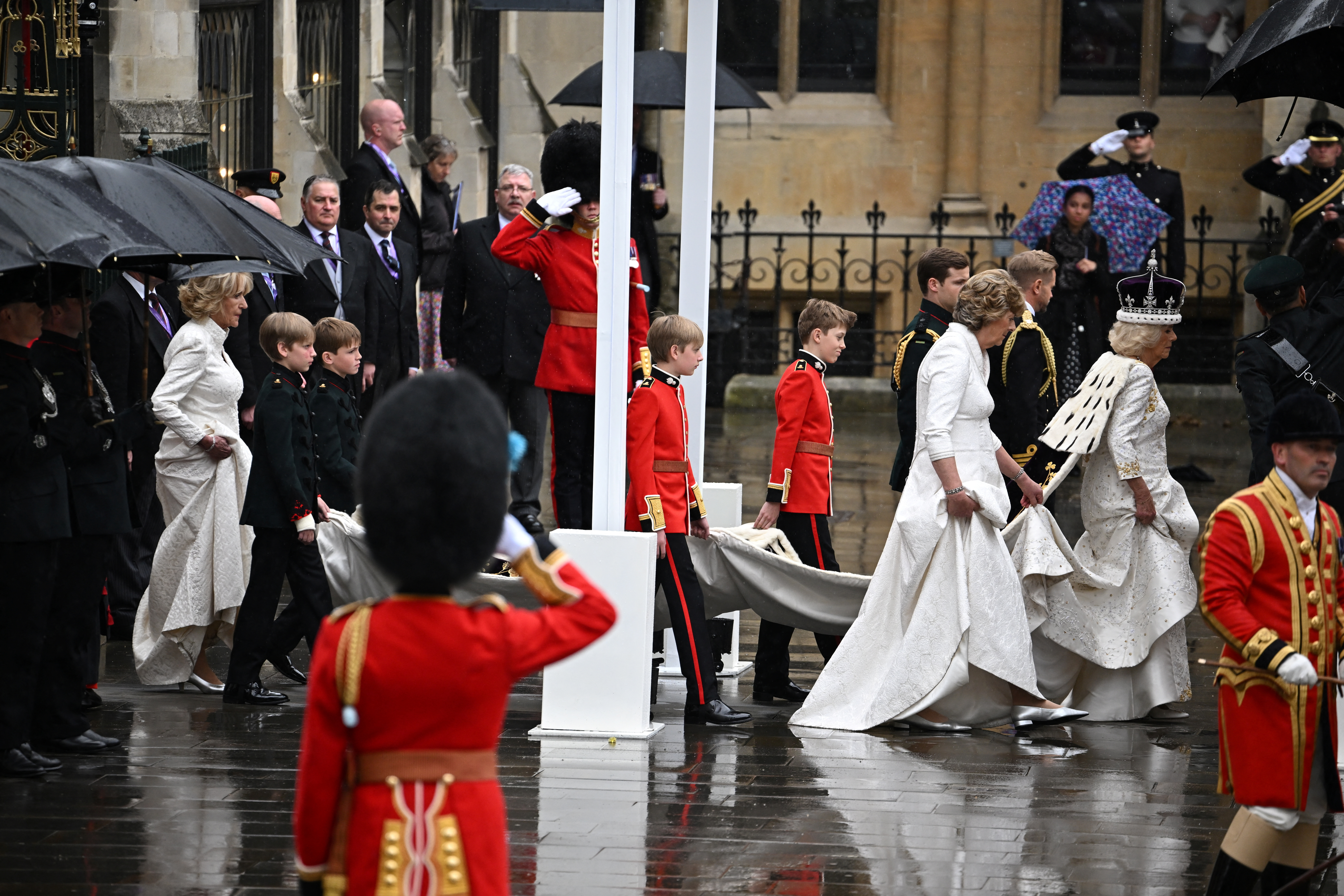 Η Καμίλα, υπό βροχήν, αναχωρεί από το Αβαείο του Ουέστμινστερ.