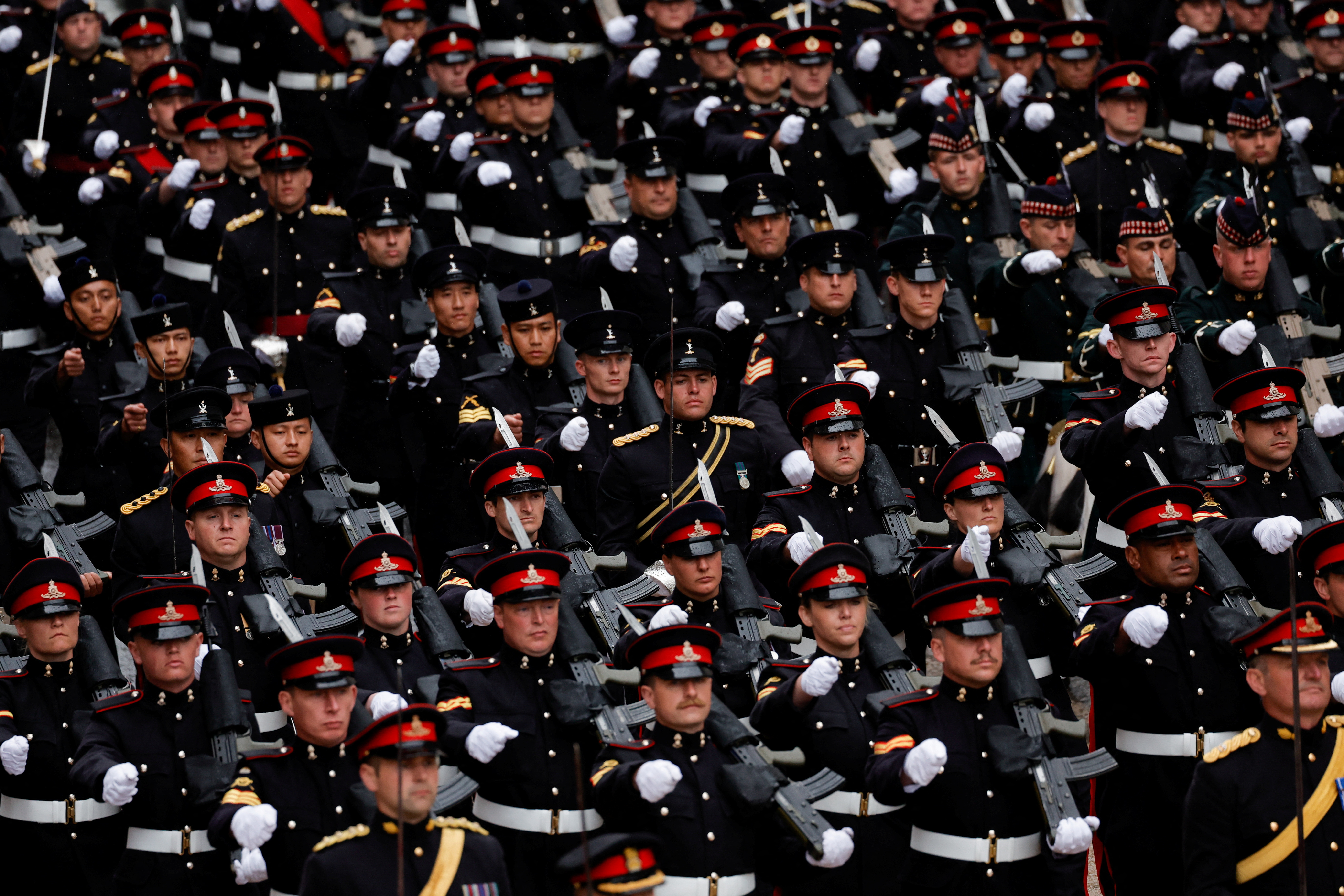 - 13:39Στρατιώτες ετοιμάζονται να χαιρετίσουν με 62 πυρ στον Πύργο του Λονδίνου.