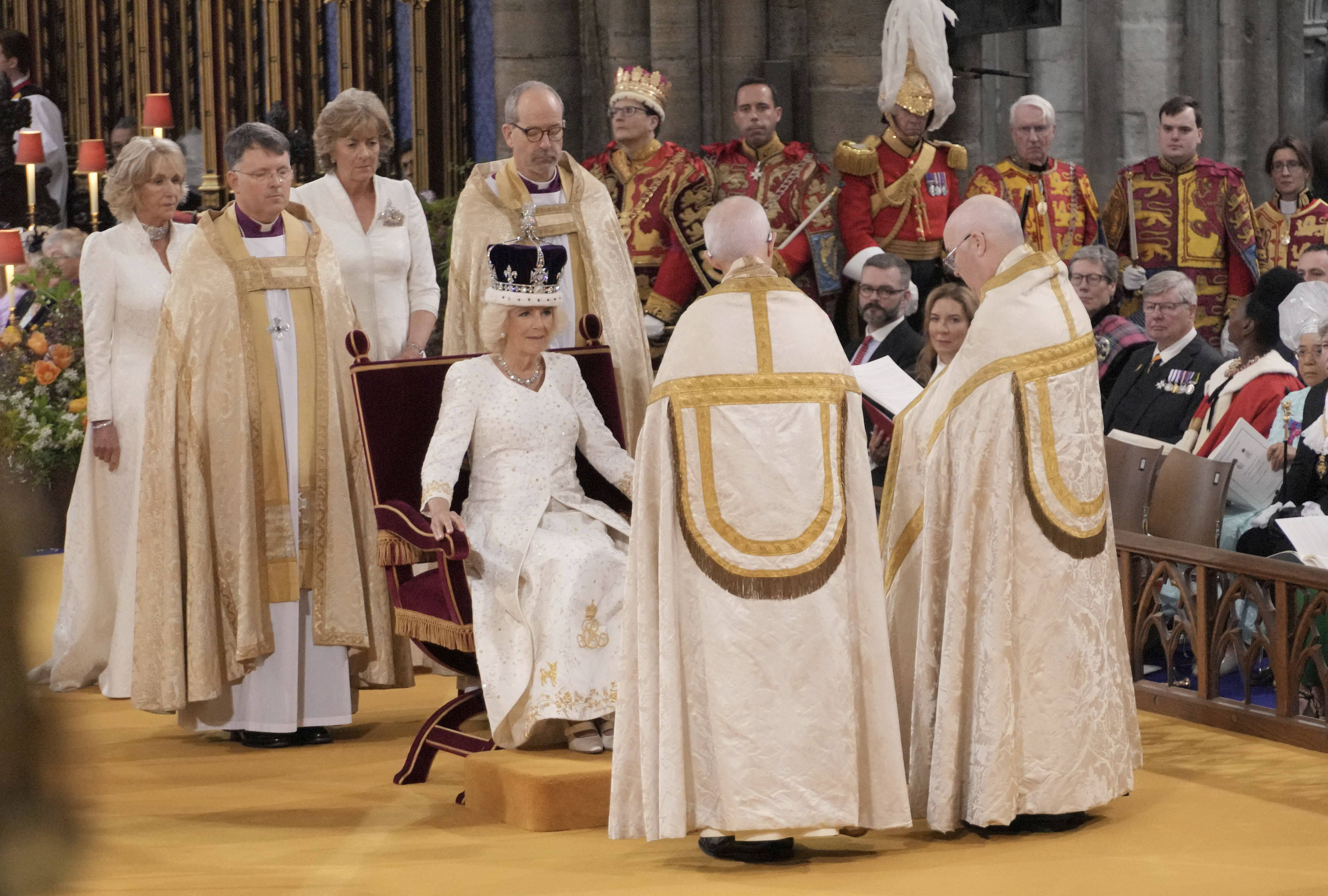 Η τελετή συνεχίζεται με τη στέψη της βασιλικής συζύγου Καμίλα.