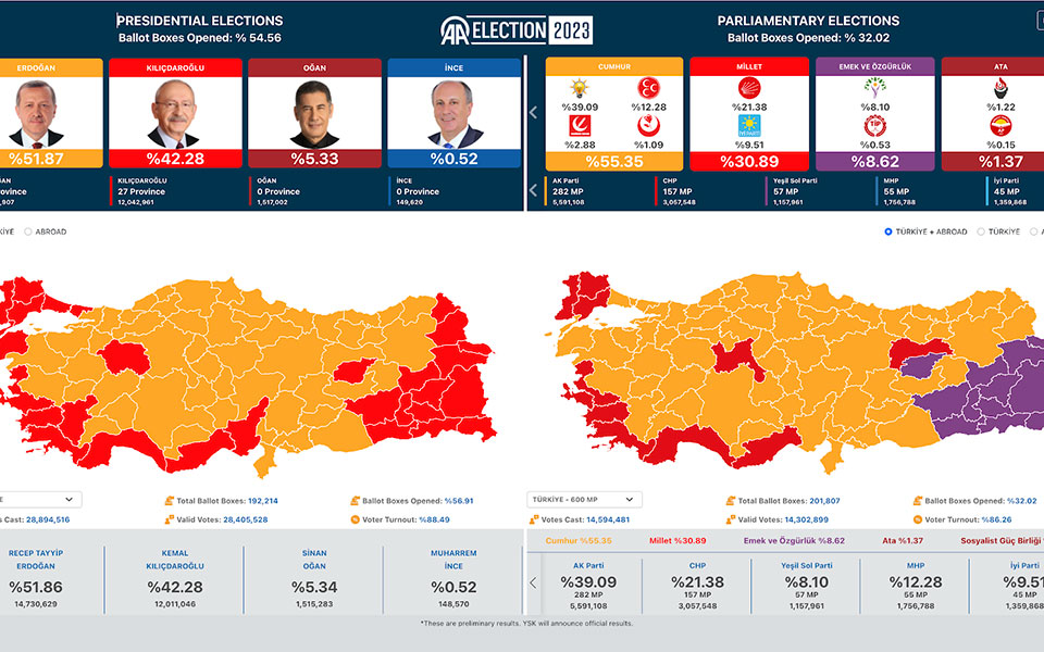 - 21:53Εκλογές στην Τουρκία: Ολα δείχνουν ότι οδεύουμε προς δεύτερο γύρο