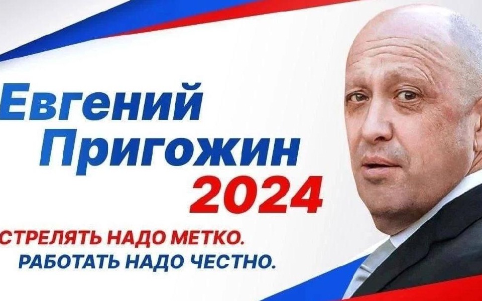 «Πυροβολήστε με ακρίβεια. Εργαστείτε τίμια. Γεβγένι Πριγκόζιν 2024», λέει το σύνθημα σε μια αφίσα με τα χρώματα της ρωσικής σημαίας και την εικόνα του αρχηγού της μισθοφορικής ομάδας Βάγκνερ, σαν προάγγελος υποψηφιότητας του ιδιόρρυθμου πολέμαρχου για τις προεδρικές εκλογές στη Ρωσία σε εννέα μήνες.