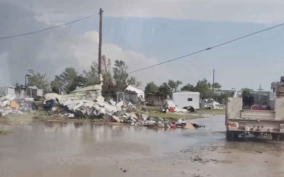 Εικόνες από το έδαφος στο Πέριτον, περίπου 180 χλμ. βορειοανατολικά του Αμαρίγιο, κοντά στο πολιτειακό σύνορο με την Οκλαχόμα, έδειχναν σπίτια που διαλύθηκαν και έμειναν στα ερείπια.