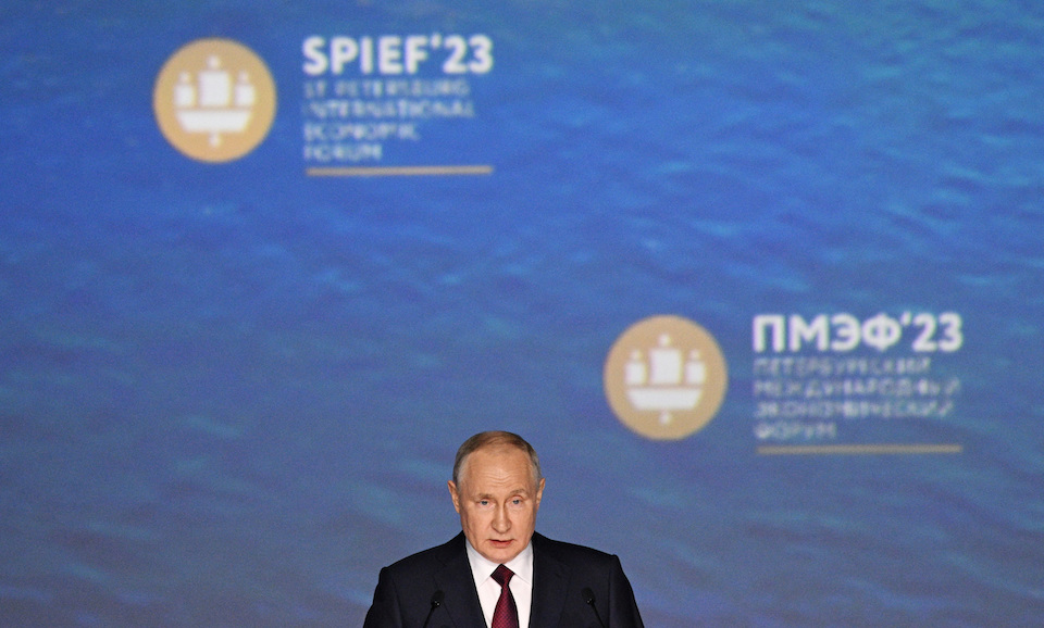 «Τα πυρηνικά όπλα κατασκευάσθηκαν για να διασφαλίσουν την ασφάλεια μας με την ευρύτερη έννοια του όρου και την ύπαρξη του ρωσικού κράτους, αλλά εμείς… δεν έχουμε τέτοια ανάγκη (να τα χρησιμοποιήσουμε)», δήλωσε ο Πούτιν, μιλώντας στο Οικονομικό Φόρουμ της Αγίας Πετρούπολης.