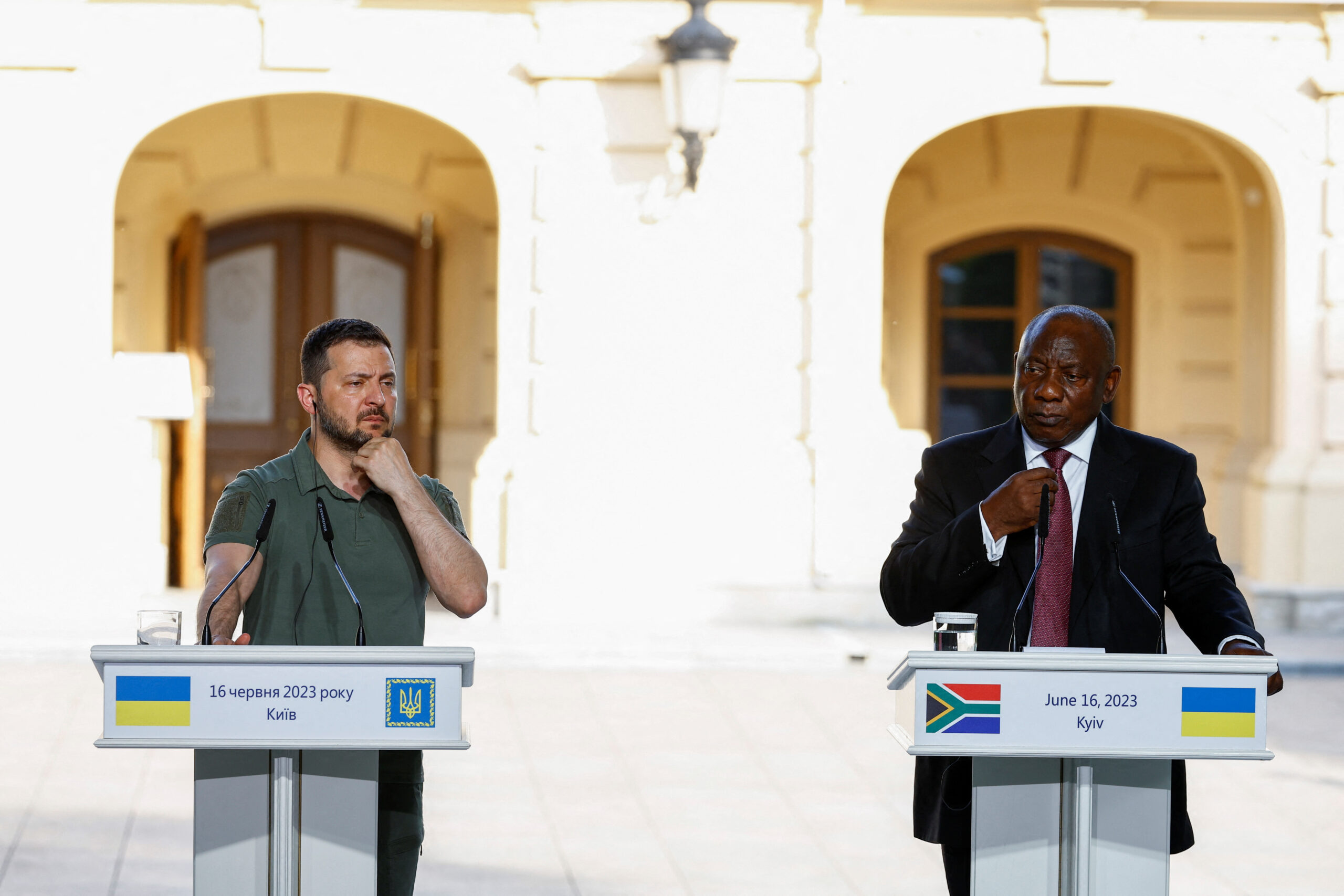 Ο Ραμαφόζα, του οποίου η επίσκεψη στη Ρωσία έχει στόχο «να συνεχίσει τις προσπάθειες της Αφρικανικής Ειρηνευτικής Αποστολής», έφτασε στην Αγία Πετρούπολη έπειτα από «εποικοδομητικές συζητήσεις που είχε με τον Ουκρανό πρόεδρο Βολοντίμιρ Ζελένσκι» χθες στο Κίεβο, σύμφωνα την ίδια ανακοίνωση.