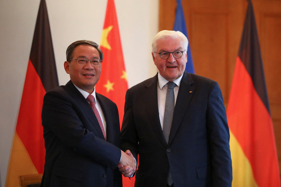 Η Κίνα θα μπορούσε να χρησιμοποιήσει το παγκόσμιο πολιτικό της βάρος και να επηρεάσει τη Ρωσία προκειμένου η τελευταία να εργαστεί για την ειρήνη, δήλωσε ο ομοσπονδιακός πρόεδρος Φρανκ Βάλτερ Σταϊνμάιερ με το βλέμμα προφανώς στραμμένο στον πόλεμο στην Ουκρανία, υποδεχόμενος νωρίτερα σήμερα τον Κινέζο πρωθυπουργό, Λι Τσιάνγκ, στο προεδρικό ανάκτορο Bellevue.