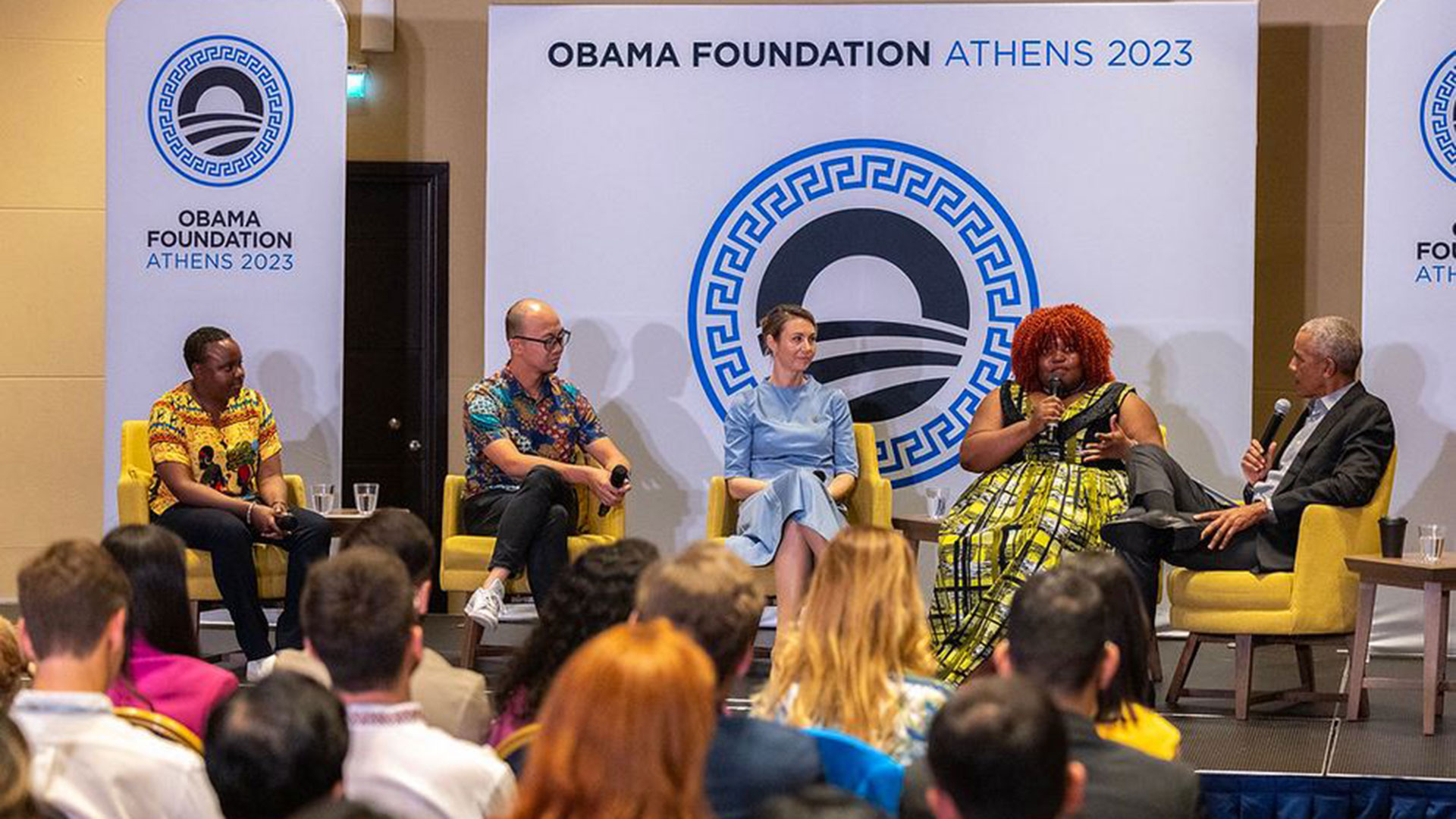 Στη συνέχεια η αδελφή του Μπαράκ Ομπάμα, Μάια Σοετόρο Εντζί, σύμβουλος του Ιδρύματος Ομπάμα, έθεσε στον πρώην Πρόεδρο των ΗΠΑ προσωπικές ερωτήσεις για παιδικές αναμνήσεις, σημαντικές συμβουλές που έχει λάβει και το όραμά του για το πρόγραμμα Obama Foundation Leaders.