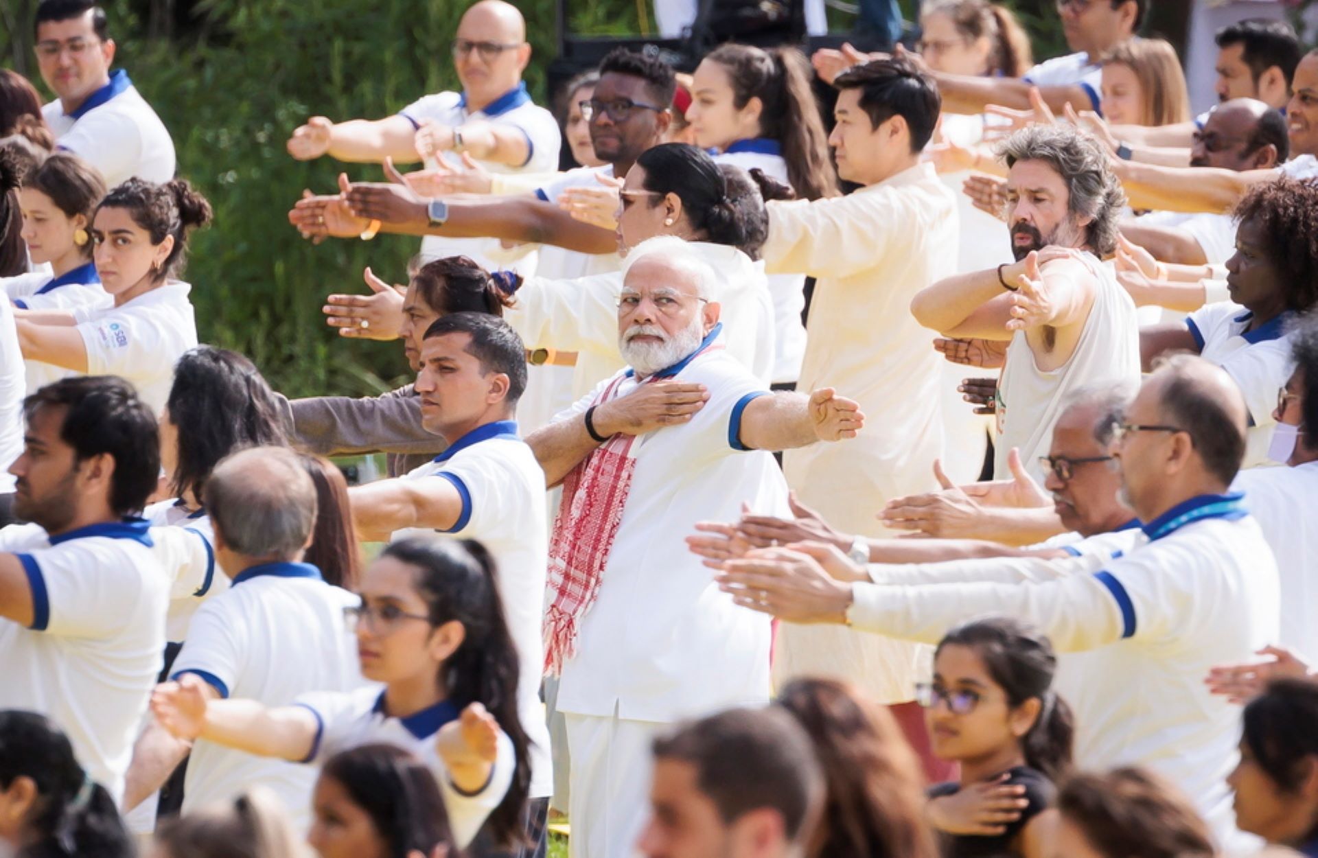 Η μαζική αυτή συνεδρία που πραγματοποιήθηκε με αφορμή τη Διεθνή Ημέρα Γιόγκα, η οποία όρισαν τα Ηνωμένα Έθνη μετά από εκστρατεία πειθούς του Μόντι, σηματοδότησε και ένα ρεκόρ για τις περισσότερες εθνικότητες συμμετεχόντων (135).