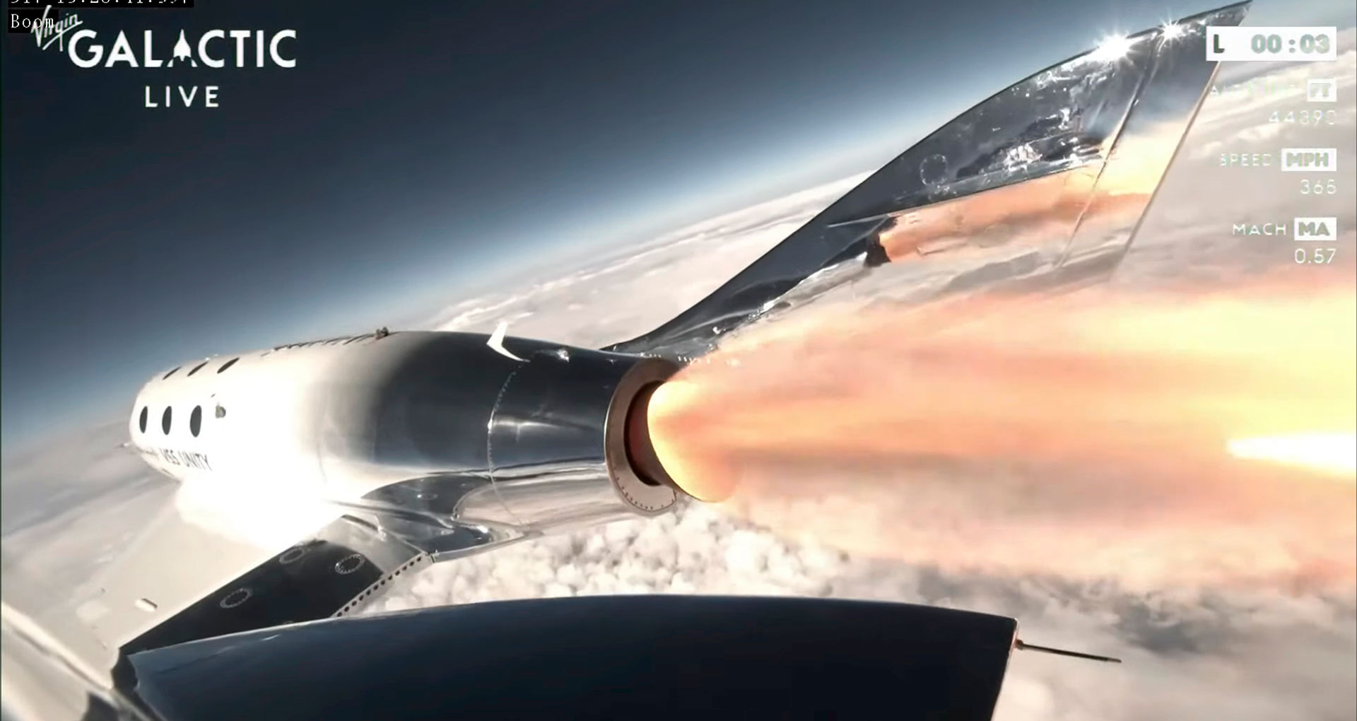 Το Unity ανέβηκε σε ύψος άνω των 45.000 ποδών από βοηθητικό αεροσκάφος. Ενσωματωμένος πυραυλικός κινητήρας έστειλε το σκάφος σε ύψος άνω των 50 μιλίων – στα όρια του διαστήματος – δίνοντας στα έξι μέλη του πληρώματος περίπου τρία λεπτά εμπειρίας έλλειψης βαρύτητας, πριν επιστρέψουν στη Γη.