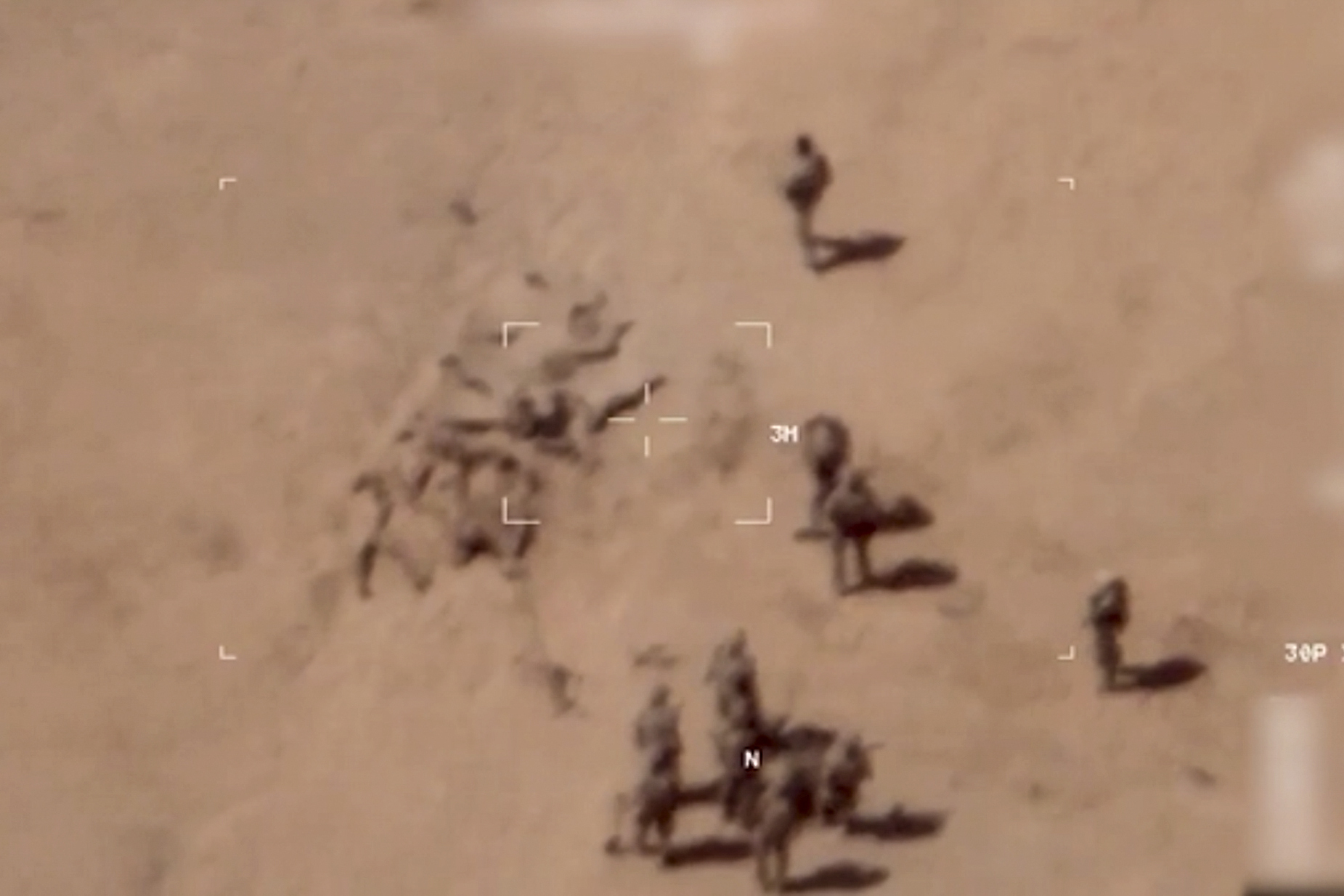 Η πηγή, η οποία ζήτησε να μην κατονομαστεί, εξήγησε πως UAVs «άγνωστης προέλευσης» έπληξαν «την αεροπορική βάση αλ Χαρούμπα, 150 χιλιόμετρα νοτιοανατολικά της Βεγγάζης (ανατολικά), όπου βρίσκονται στοιχεία του ομίλου».