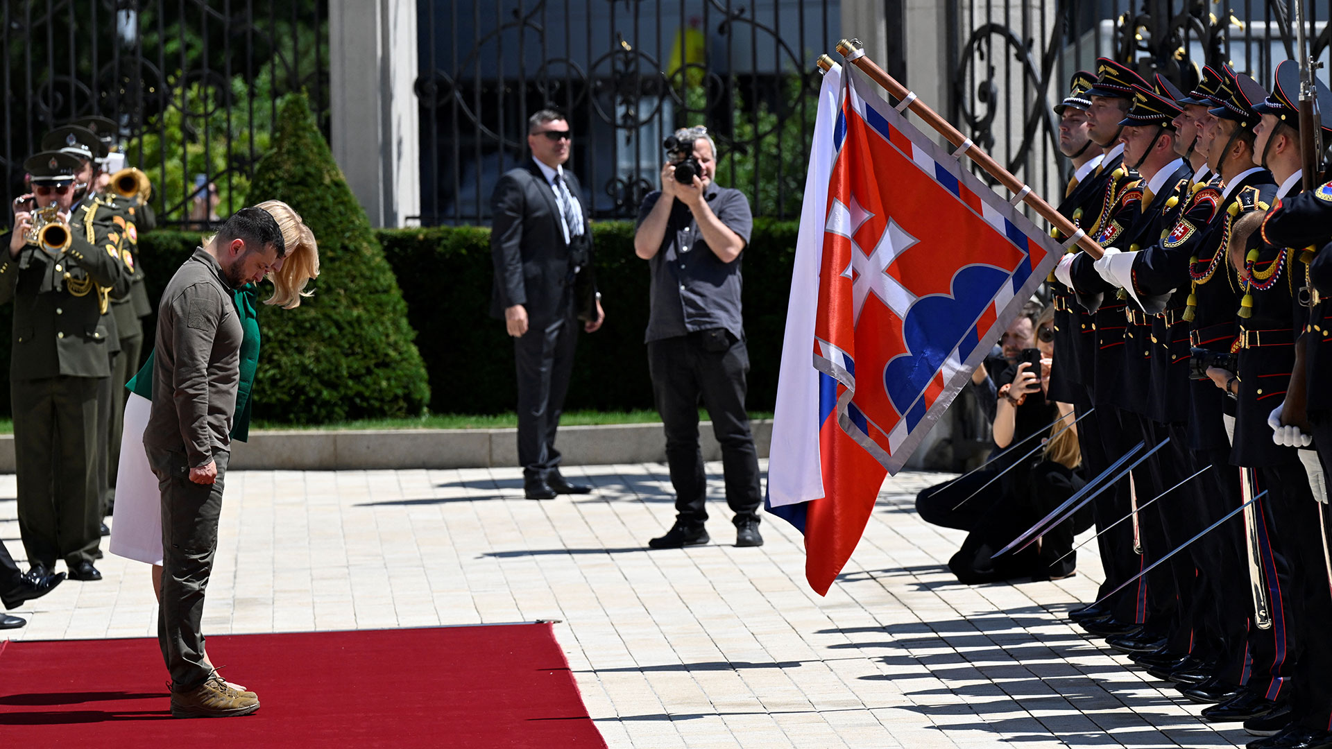 Ο Ουκρανός πρόεδρος Βολοντίμιρ Ζελένσκι έφθασε στην Μπρατισλάβα, έναν ακόμα σταθμό της περιοδείας του που έχει στόχο να εξασφαλίσει περισσότερα όπλα από τη Δύση και τη στήριξη των συμμάχων στη φιλοδοξία του Κιέβου να ενταχθεί στο ΝΑΤΟ.