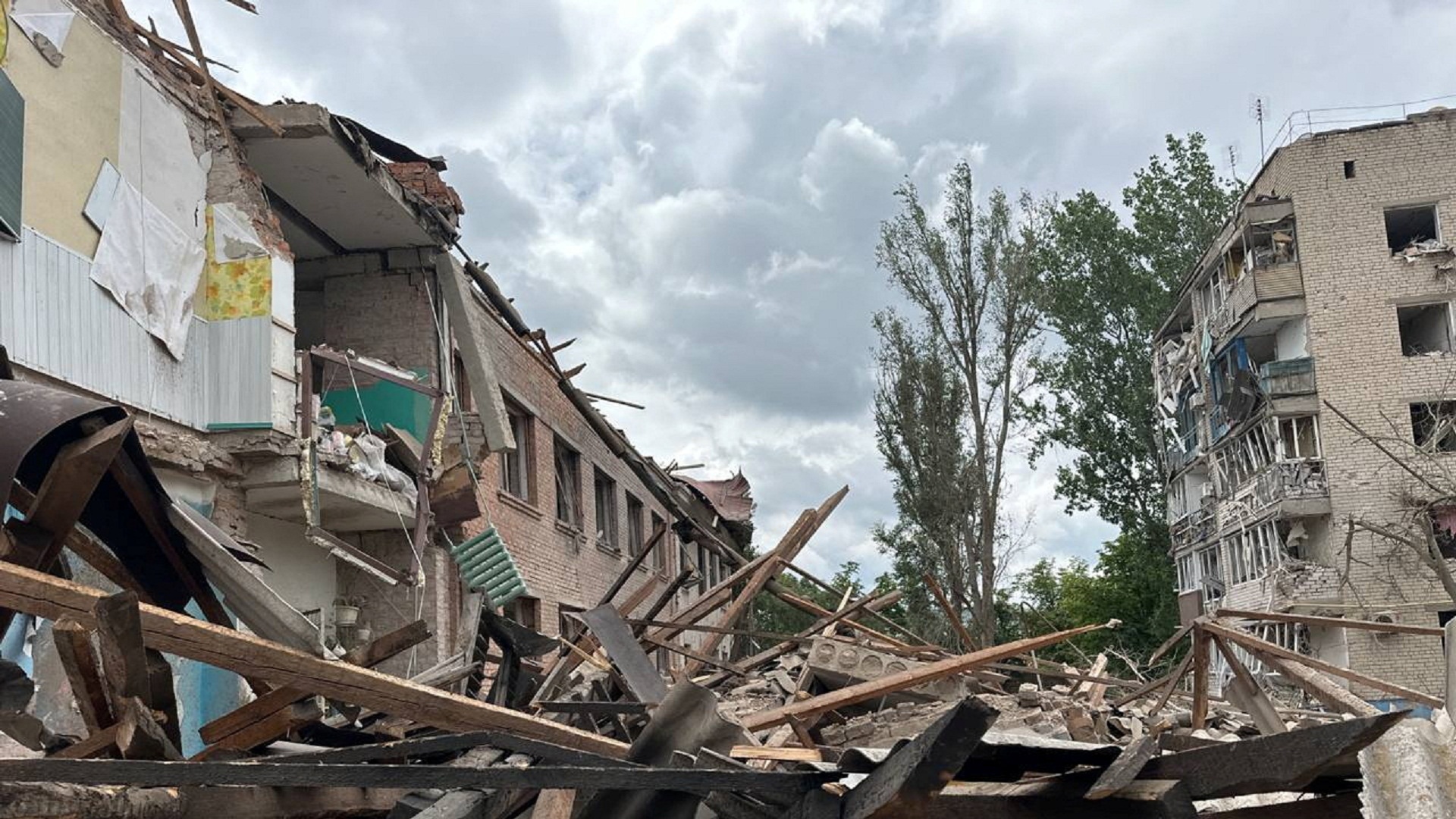 Στο κτίριο έπεσε ρουκέτα από αέρος, σκοτώνοντας τέσσερις ανθρώπους, όπως ανέφερε σε ανάρτησή του στο Telegram ο Ουκρανός περιφερειάρχης της Ζαπορίζια, Γιούρι Μαλάσκο.