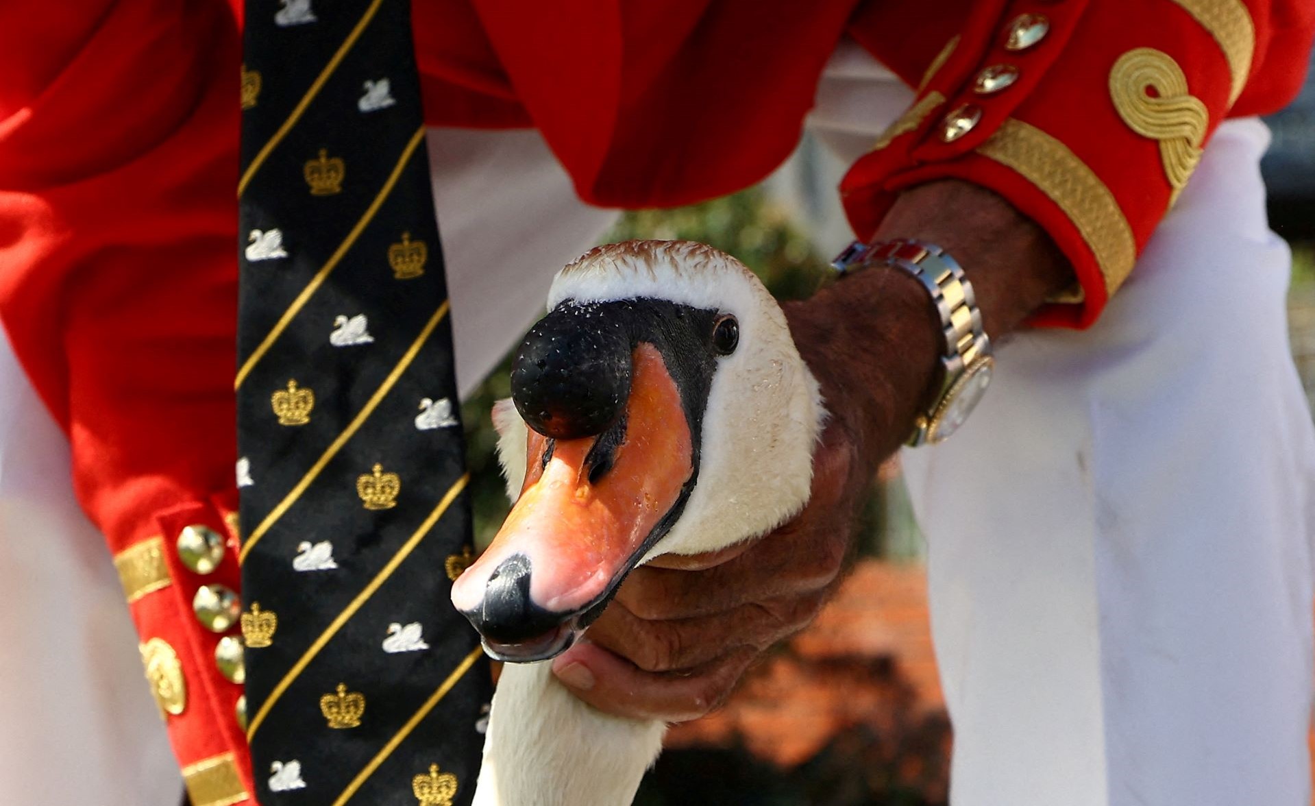 Ντυμένοι στα κόκκινα και λευκά, οι υπάλληλοι των ανακτόρων περιφέρονται με βάρκες στα διαφορετικά τμήματα του Τάμεση, πιάνοντας, ζυγίζοντας και ελέγχοντας για τυχόν ασθένειες ή τραυματισμούς τους κύκνους.