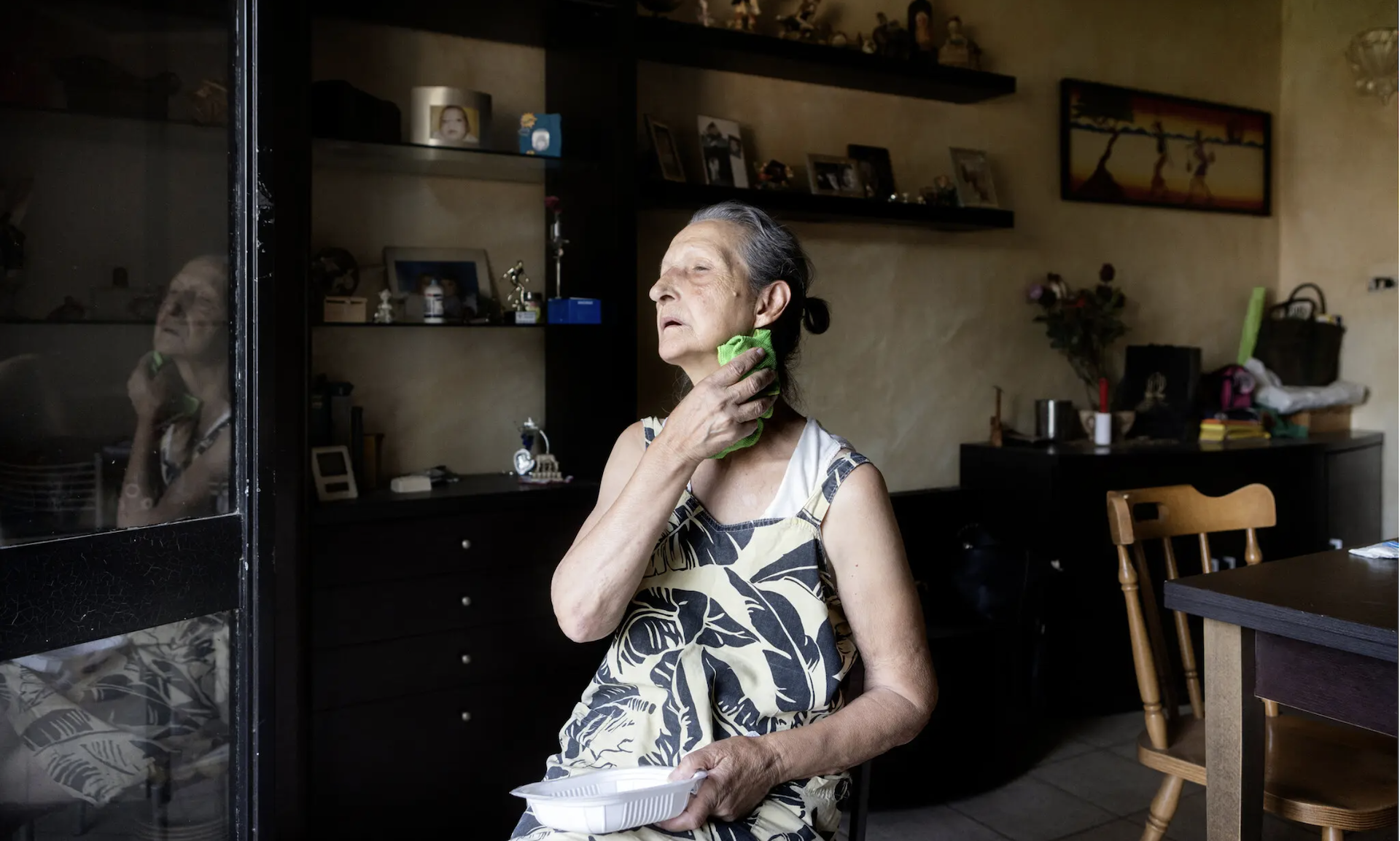 Η 75χρονη Ντονάτα Γκρίλο ζει στα προάστια της Ρώμης, σε ένα μικρό διαμέρισμα χωρίς κλιματιστικό ή ανεμιστήρα. Για να αντέξει τους 41 βαθμούς Κελσίου που έζησε η ιταλική πρωτεύουσα αυτήν την εβδομάδα, κάθεται στο μπαλκόνι του σπιτιού της με ένα υγρό σφουγγάρι στην αγκαλιά.