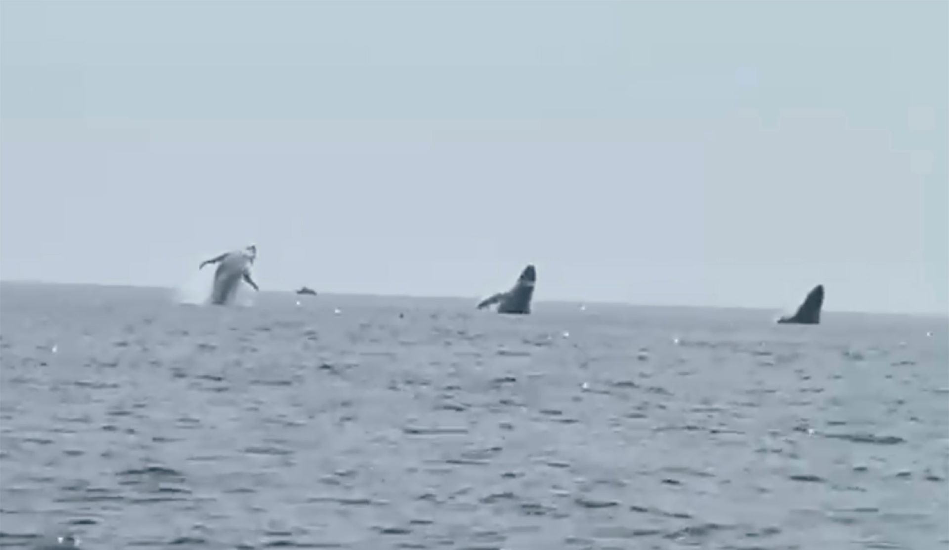 Τρεις μεγάπτερες φάλαινες εκτελούσαν μπροστά στα έκπληκτα μάτια τους μια τέλεια συγχρονισμένη «χορογραφία».
