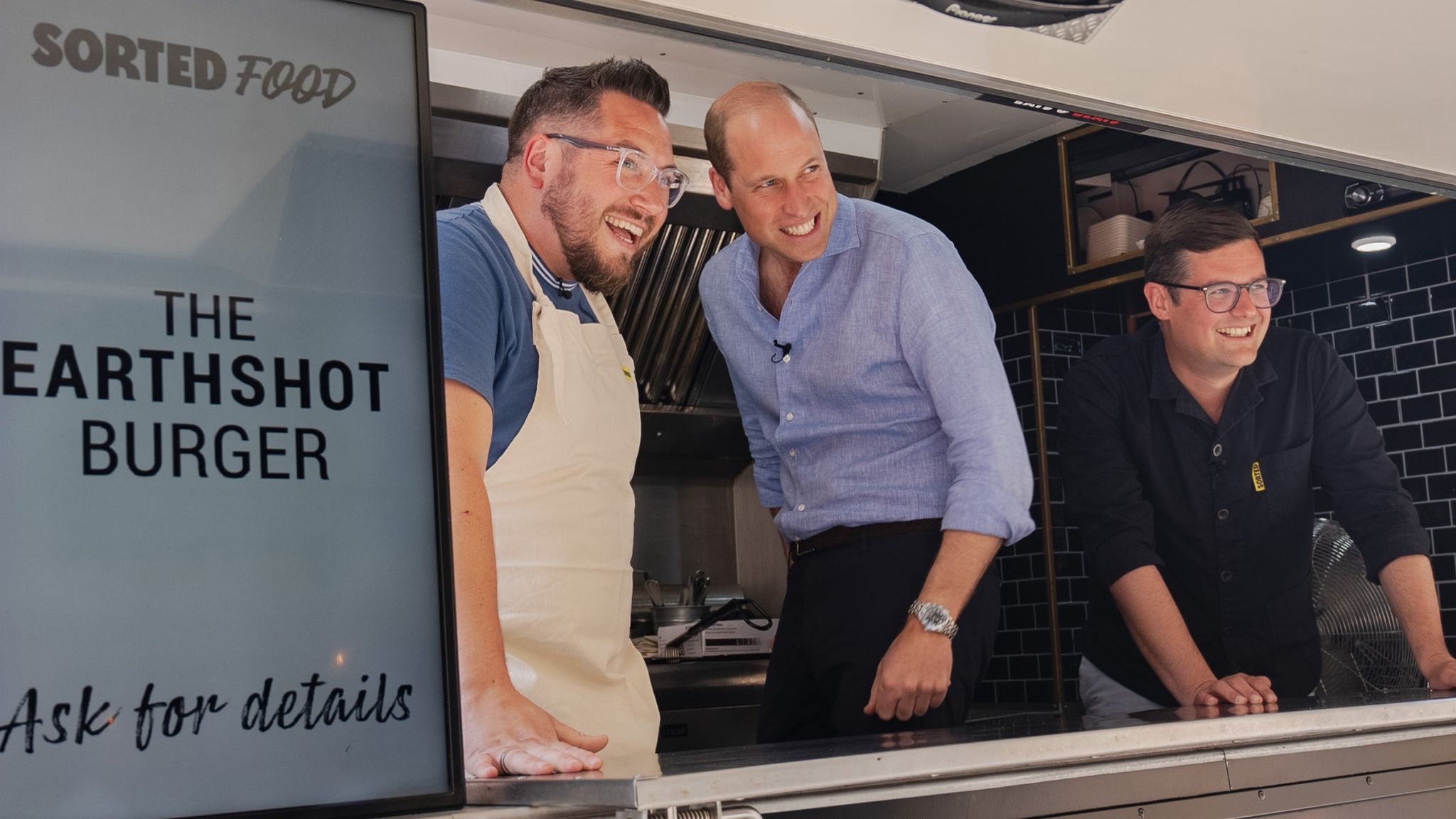 Σε ένα βίντεο που δόθηκε σήμερα στη δημοσιότητα ο διάδοχος του θρόνου φαίνεται να προσφέρει μπέργκερ στους «πελάτες» του «Earthsot Burgers», προς τιμή των νικητών του βραβείου Earhshot Prize, το οποίο απονέμεται σε άτομα που αναπτύσσουν λύσεις σε σημαντικά περιβαλλοντικά προβλήματα.