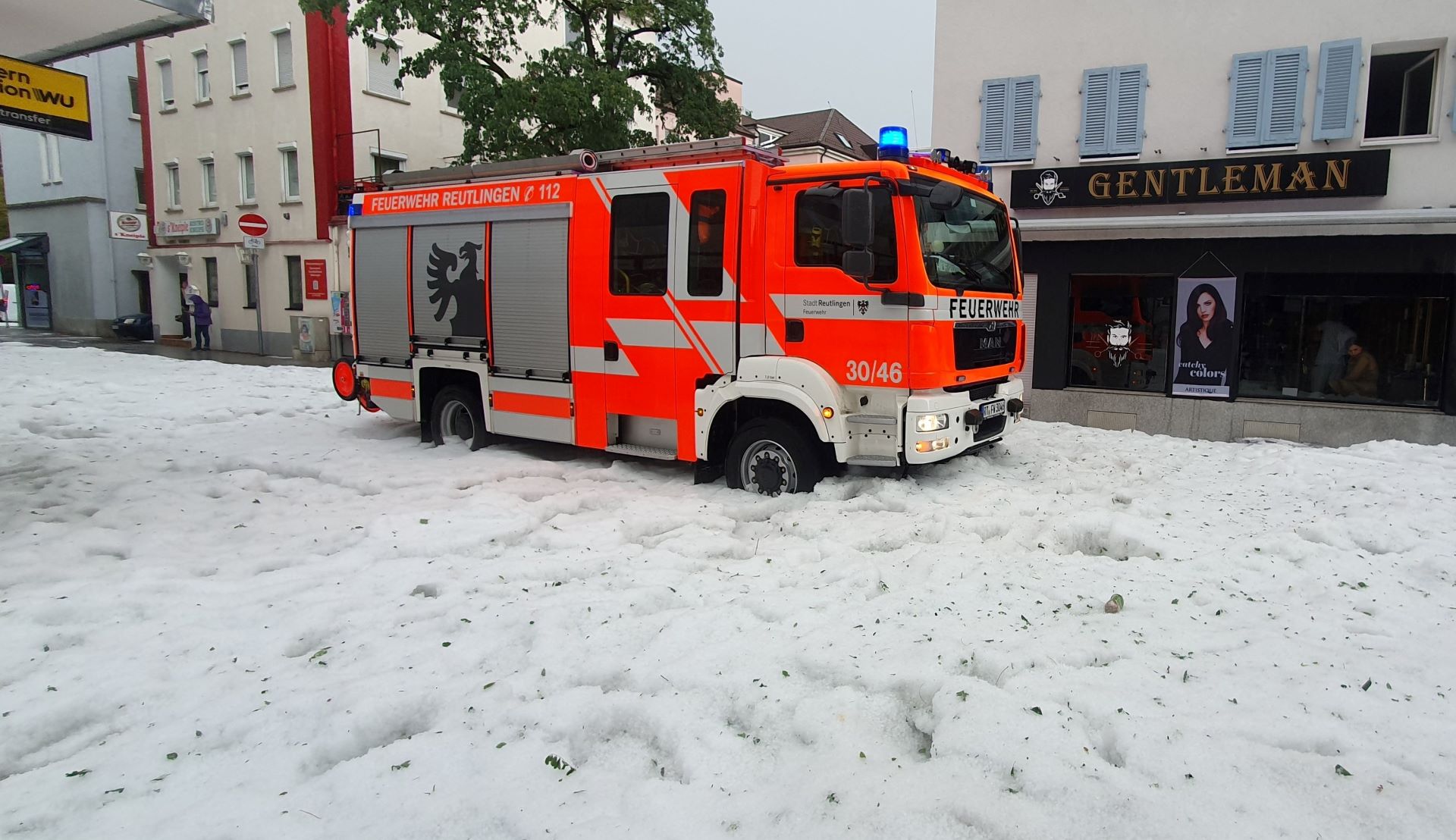 Schweres Unwetter trifft Reutlingen! 🌩️ Hagel & Starkregen führten zu Überflutungen & Schäden. Laub und 30 cm hoher Hagel setzten innerhalb weniger Minuten die Abflussschächte zu und Wasser strömte in Tiefgaragen, Keller und Wohngebäude. https://t.co/324East5A8 pic.twitter.com/NiE3vcIzwt