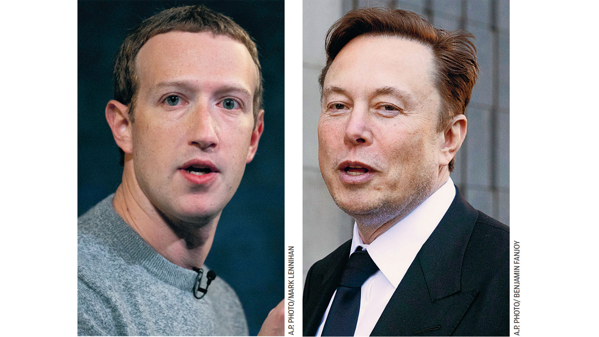 ΣΑΝ ΦΡΑΝΣΙΣΚΟ. Σάρκα και οστά μοιάζει να αποκτά το σχέδιο των αφεντικών του Meta και της Χ (πρώην Twitter), Μαρκ Ζούκερμπεργκ και Ελον Μασκ, προκειμένου να αναμετρηθούν σε αγώνα πάλης χωρίς κανόνες και στο εσωτερικό μεταλλικού κλουβιού. Την πρόθεσή τους αυτή είχαν ανακοινώσει οι δύο μεγιστάνες στις αρχές Ιουνίου.